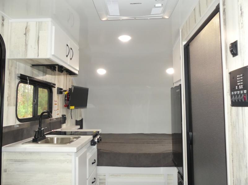 With the Big Buggy teardrop trailer by Modern Buggy RV, you will have all-terrain tires with 14" ground clearance allowing you to venture on bumpy, muddy and off-the-beaten path roads. They are full of modern amenities including LED lights, outlets, and USB charging stations, plus a 13,500 BTU air conditioner and electric heat strip. These models are built on a high quality strength, custom aluminum frame, and are put together with AZDEL ceiling and walls. Get out and explore today with the Big Buggy in tow!