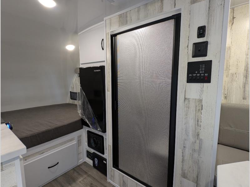 With the Big Buggy teardrop trailer by Modern Buggy RV, you will have all-terrain tires with 14" ground clearance allowing you to venture on bumpy, muddy and off-the-beaten path roads. They are full of modern amenities including LED lights, outlets, and USB charging stations, plus a 13,500 BTU air conditioner and electric heat strip. These models are built on a high quality strength, custom aluminum frame, and are put together with AZDEL ceiling and walls. Get out and explore today with the Big Buggy in tow!