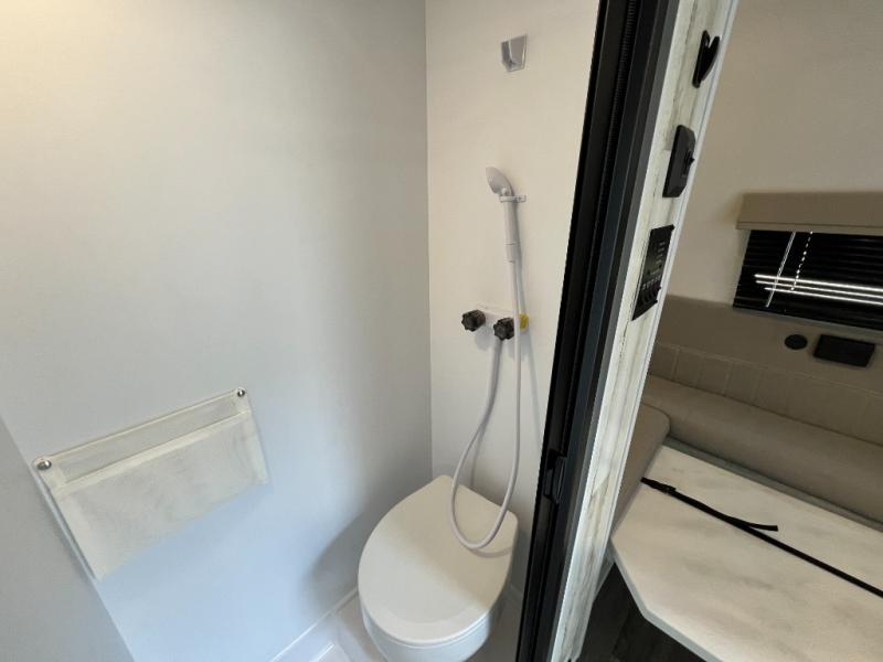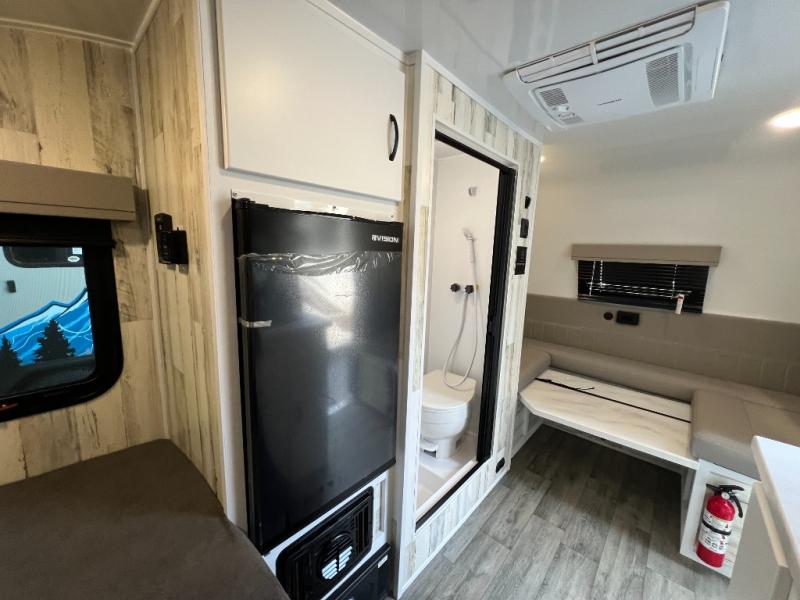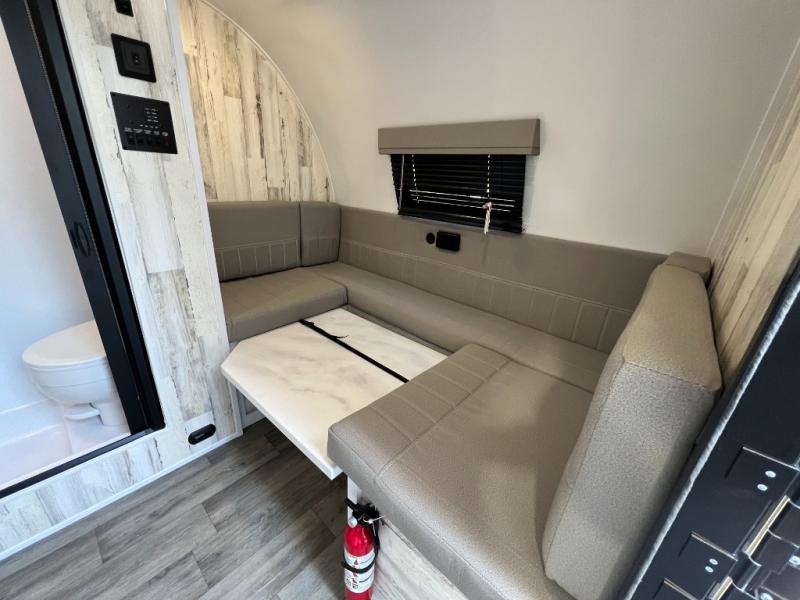 If you're looking for a teardrop trailer with a little more space, check out this Big Buggy BB14! There is a front U-shaped dinette that can convert to cozy sleeping space, a two burner stove, plus a large 12V refrigerator. You can clean up each day in the wet bath that includes a two way bath vent fan plus a Dometic toilet. The exterior baggage door will keep all your gear secure, and the torsion axle will provide smooth towing from home to campground.