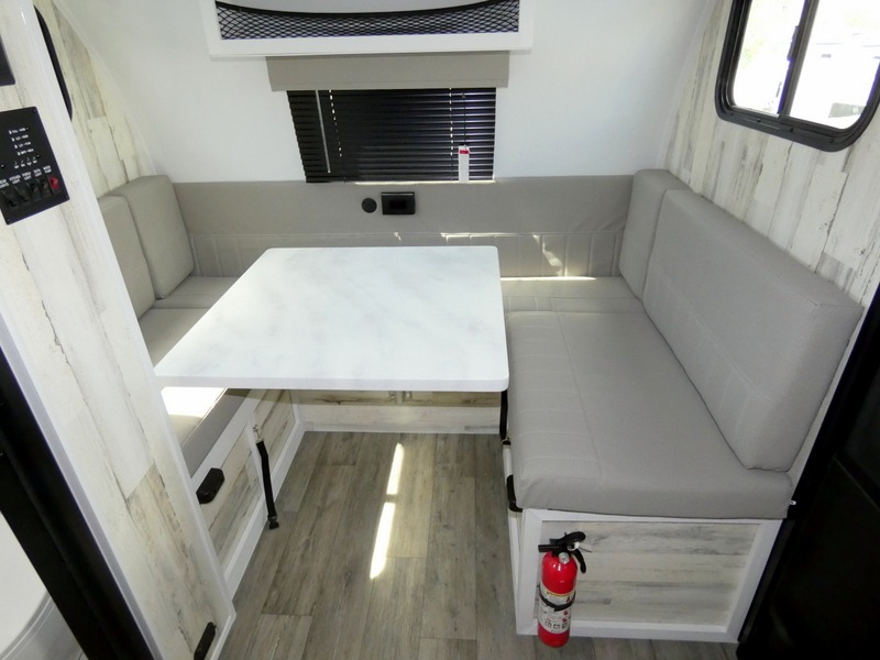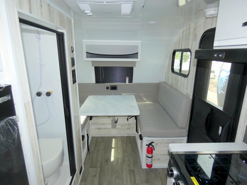 If you're looking for a teardrop trailer with a little more sleeping space, check out this Big Buggy BB16! There is a front U-shaped dinette that can convert to cozy sleeping space, along with a 78" x 36" upper bunk, a two burner stove, and a large refrigerator for food. You can clean up each day in the wet bath that includes a two way bath vent fan plus a Dometic toilet. The exterior baggage door and front exterior baggage door will keep all your gear secure, and the torsion axle will provide smooth towing from home to campground.