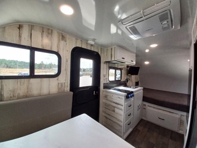 With the Big Buggy teardrop trailer by Modern Buggy RV, you will have all-terrain tires with 14" ground clearance allowing you to venture on bumpy, muddy and off-the-beaten path roads. They are full of modern amenities including interior lights, outlets, and USB charging stations, plus a 13,500 BTU air conditioner and electric heat strip. These models are built on a high quality strength, custom aluminum frame, and are put together with AZDEL ceiling and walls. Get out and explore today with the Big Buggy in tow!
