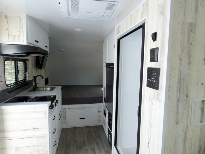 With the Big Buggy teardrop trailer by Modern Buggy RV, you will have all-terrain tires with 14" ground clearance allowing you to venture on bumpy, muddy and off-the-beaten path roads. They are full of modern amenities including interior lights, outlets, and USB charging stations, plus a 13,500 BTU air conditioner and electric heat strip. These models are built on a high quality strength, custom aluminum frame, and are put together with AZDEL ceiling and walls. Get out and explore today with the Big Buggy in tow!