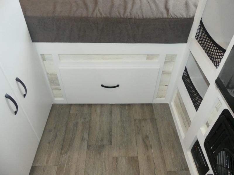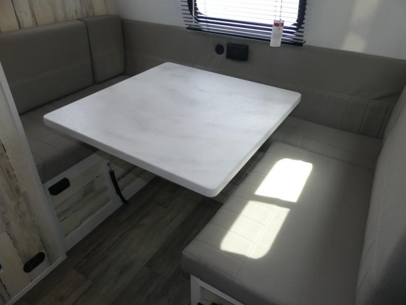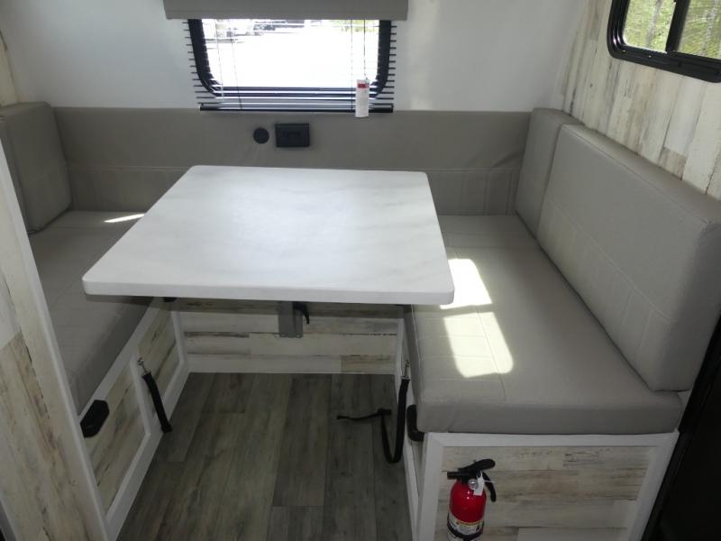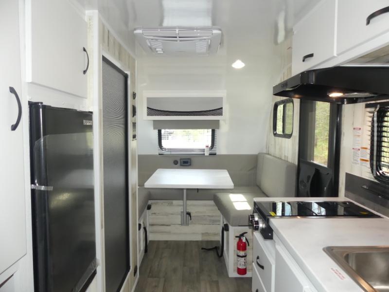 If you're looking for a teardrop trailer with a little more sleeping space, check out this Big Buggy BB16! There is a front U-shaped dinette that can convert to cozy sleeping space, along with a 78" x 36" upper bunk, a two burner stove, and a large refrigerator for food. You can clean up each day in the wet bath that includes a two way bath vent fan plus a Dometic toilet. The exterior baggage door and front exterior baggage door will keep all your gear secure, and the torsion axle will provide smooth towing from home to campground.