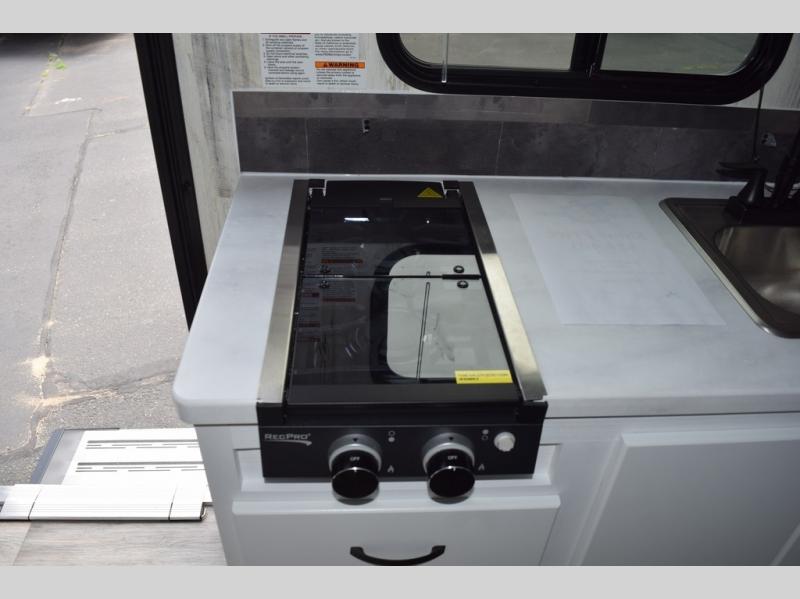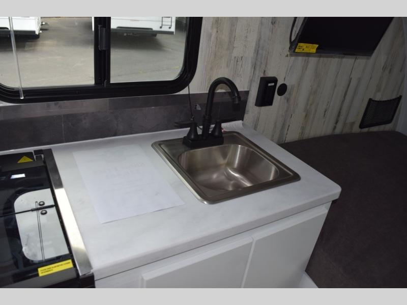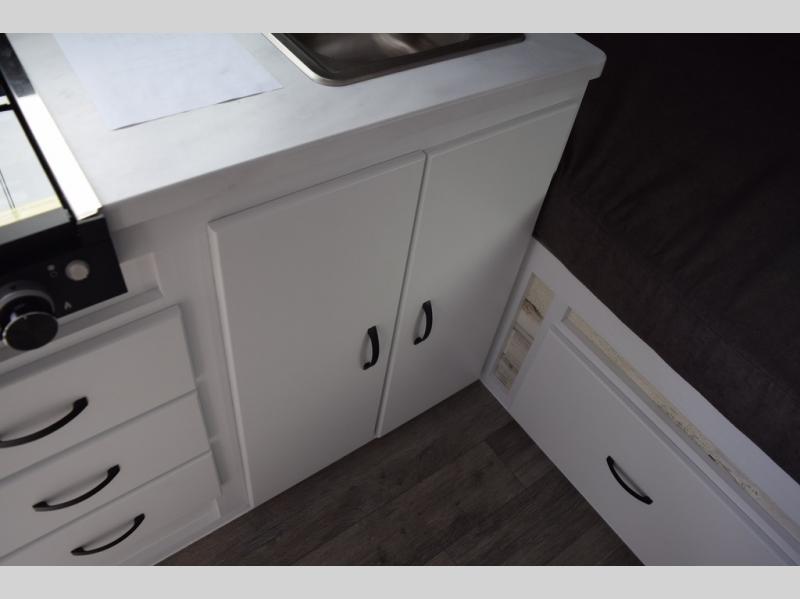 If you're looking for a teardrop trailer with a little more sleeping space, check out this Big Buggy BB16! There is a front U-shaped dinette that can convert to cozy sleeping space, along with a 78" x 36" upper bunk, a two burner stove, and a large refrigerator for food. You can clean up each day in the wet bath that includes a two way bath vent fan plus a Dometic toilet. The exterior baggage door and front exterior baggage door will keep all your gear secure, and the torsion axle will provide smooth towing from home to campground.