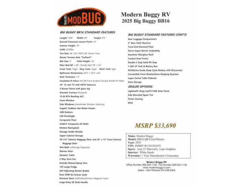 Modern Buggy RV Big Buggy teardrop trailer BB16 highlights: