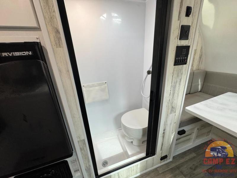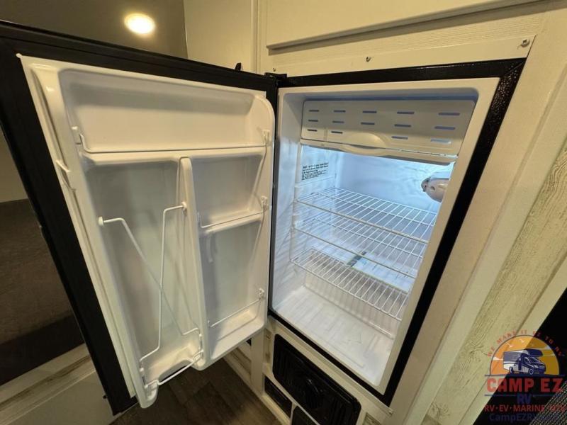 If you're looking for a teardrop trailer with a little more sleeping space, check out this Big Buggy BB16! There is a front U-shaped dinette that can convert to cozy sleeping space, along with a 78" x 36" upper bunk, a two burner stove, and a large refrigerator for food. You can clean up each day in the wet bath that includes a two way bath vent fan plus a Dometic toilet. The exterior baggage door will keep all your gear secure, and the torsion axle will provide smooth towing from home to campground.