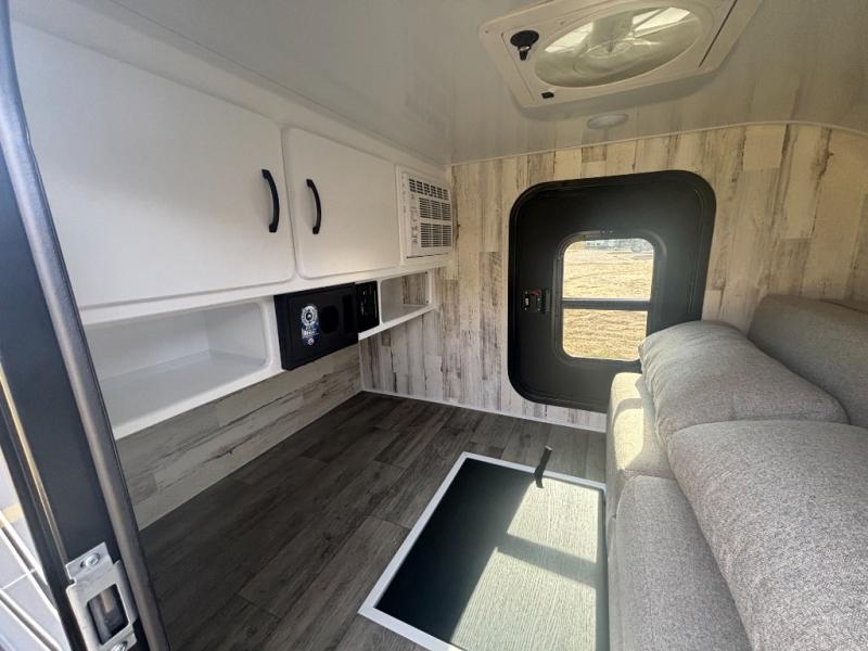 With any Country Born teardrop trailer by Modern Buggy, you have the ability to go off the beaten path with all-terrain tires, and each model is constructed with durable Azdel walls so you can enjoy your trailer for years to come. There are electric brakes and dual leveling jacks to make towing and set-up easier than ever, and the outside shower/spray port will let you wash off hiking gear when needed. Inside, you'll enjoy USB stations to keep your electronics charged and lights to keep your space well lit. An optional Timbren suspension can be chosen to make towing easier than ever, along with additional optional upgrades.