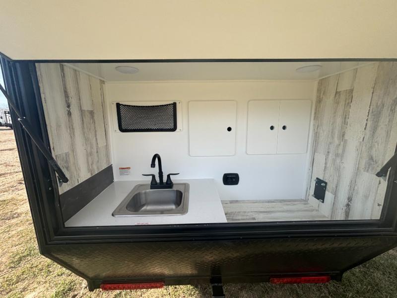 This lightweight trailer can easily be towed behind a car, so you may not even need to purchase a new tow vehicle! You'll enjoy 200W fixed solar, an exterior griddle, and three enclosed storage cabinets outside. There is also a stainless steel sink with a faucet and weatherproof exterior cabinetry to keep your items protected. Once inside, you can relax on the 6" memory foam mattress that will convert to a sofa during the day. If you're needing additional sleeping space, consider choosing the optional rooftop tent!
