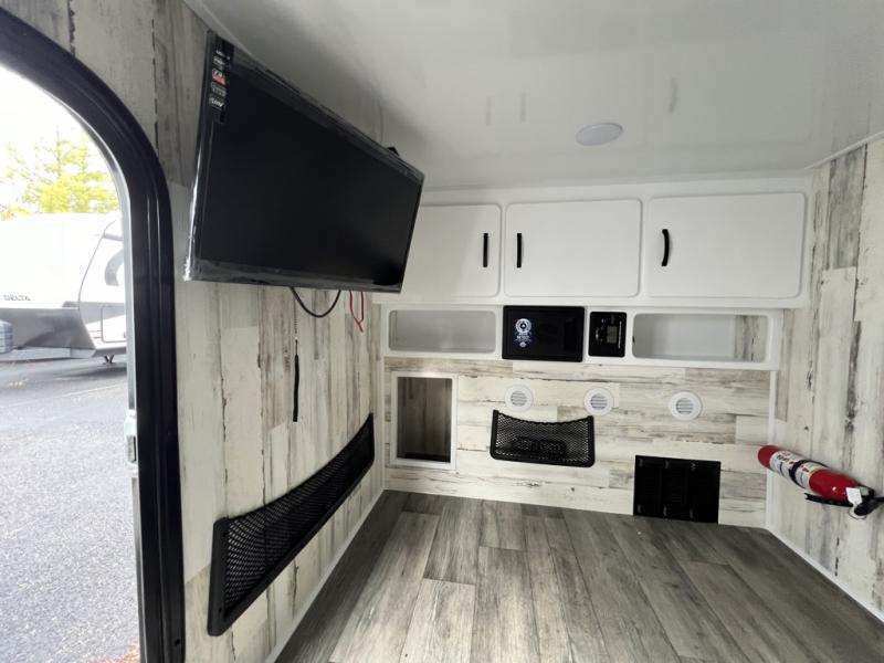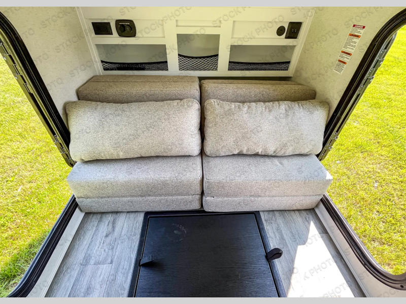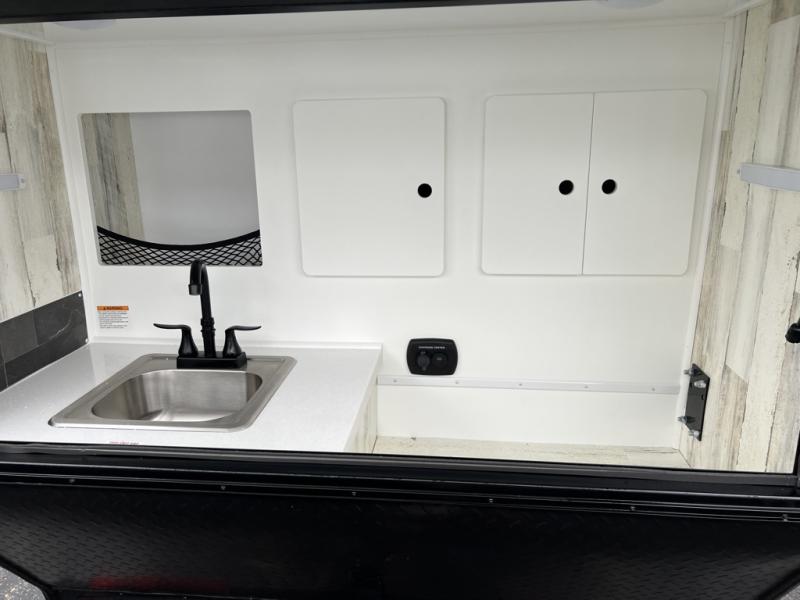 You'll love spending time in nature with this trailer for two! There is a 6" memory foam mattress that converts to a sofa during the day, and there is an overhead cabinet to keep your things organized. The outside kitchen will let you make meals each day, and the front storage box will be the perfect place to store tools and more.