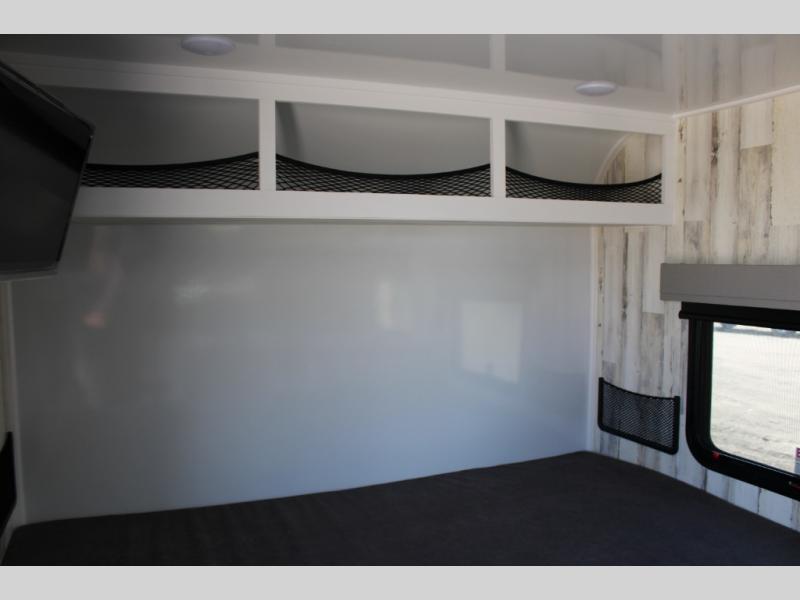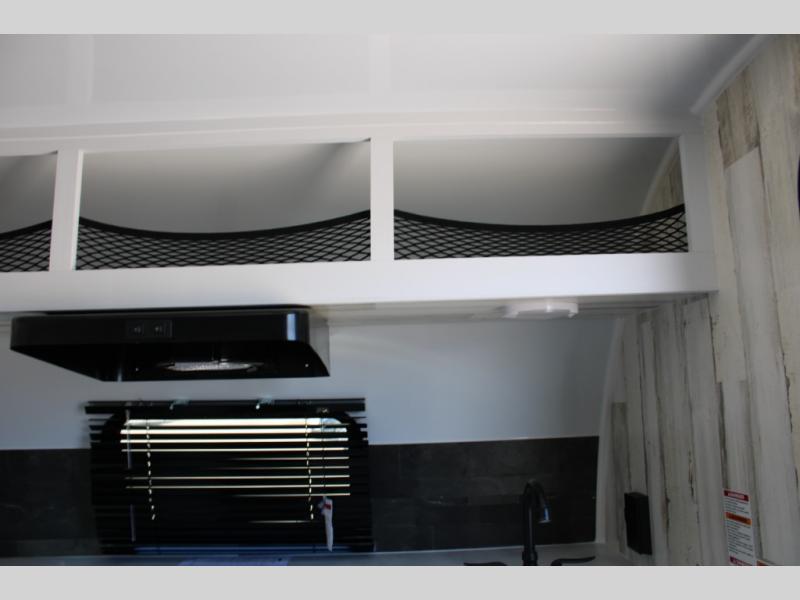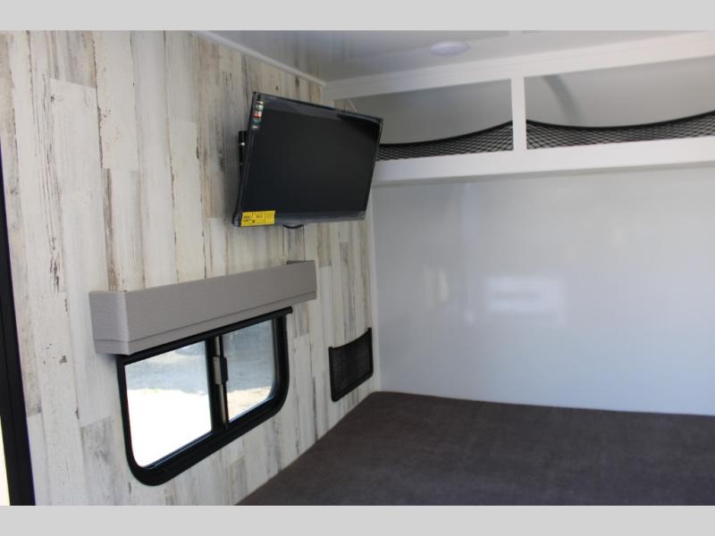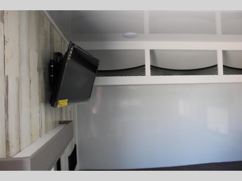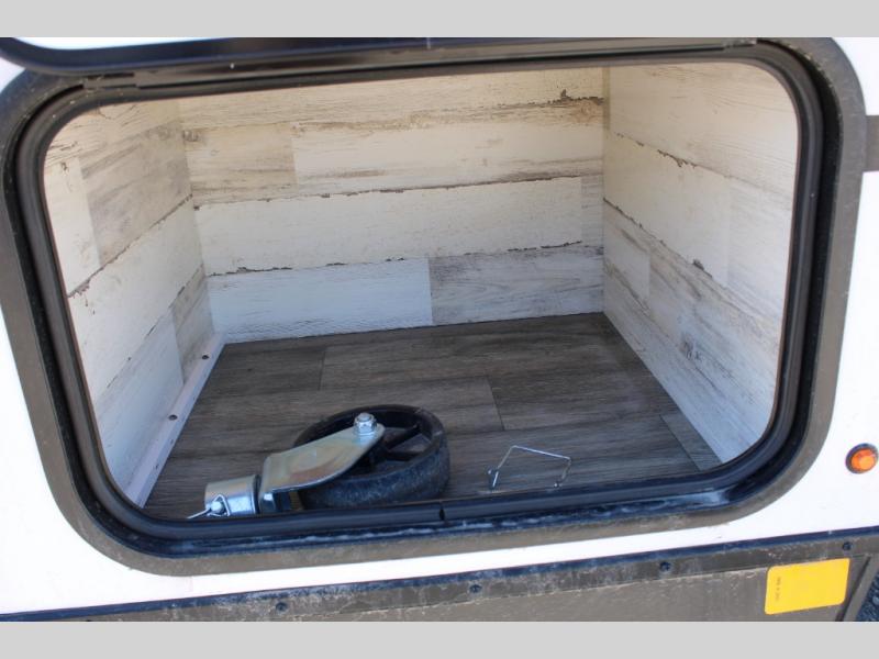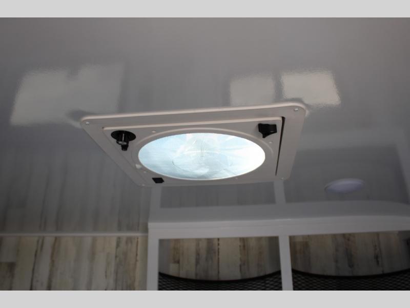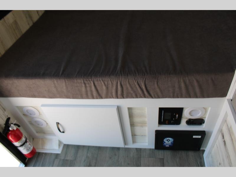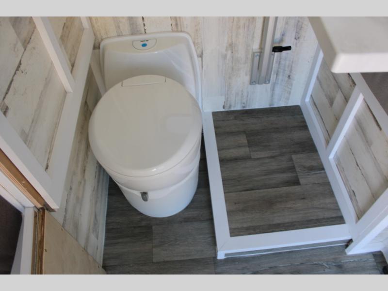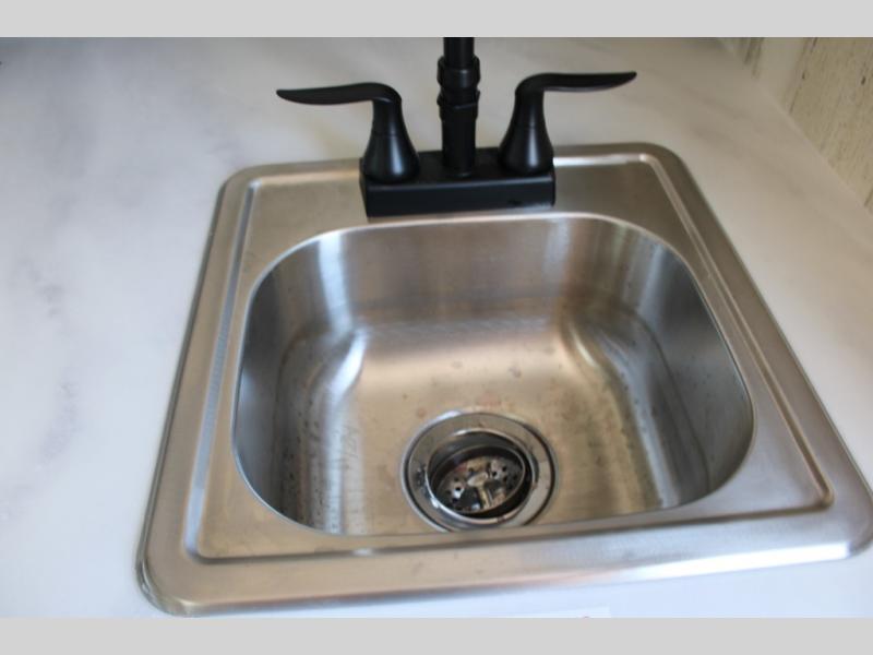 If you're looking for a lightweight trailer with a little more comfort, take a look at this one! There is a booth dinette that converts to a queen-size bed for a great night's rest, and the cassette toilet adds convenience so you don't' have to leave your trailer in the middle of the night. The kitchen includes a two burner stove, countertop and 12V refrigerator to keep food fresh. The front window with a black roller shade plus side windows will provide great outdoor views, and the storage organizer will keep your valuables tucked away. And an optional griddle/slide tray can be added if you want the option to cook meals outdoors!