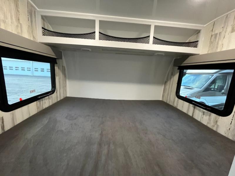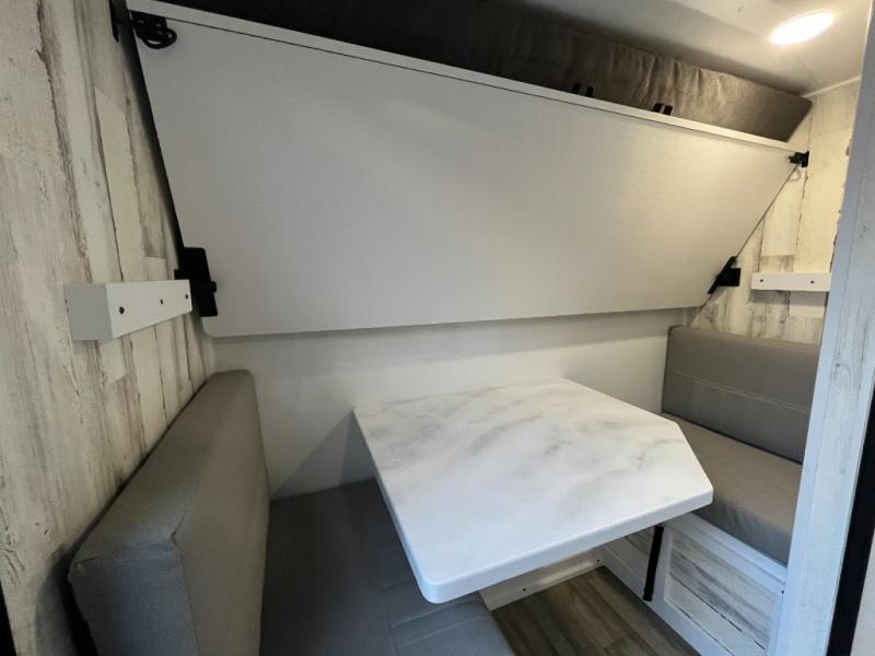If you're looking for a lightweight trailer with a little more comfort, take a look at this one! There is a 60" x 79" bed to sleep on each night, along with a booth dinette that converts to a 78" x 30" bed and an upper 78" x 27" bunk, allowing you to sleep five to six! The kitchen includes a two burner stove, countertop and 12V refrigerator to keep food fresh. This unit also features four front side windows, black roller shades, a 24" 12V HDTV, and many more comforts!