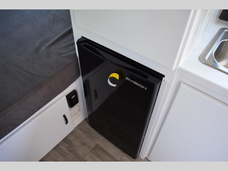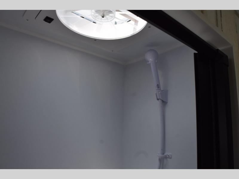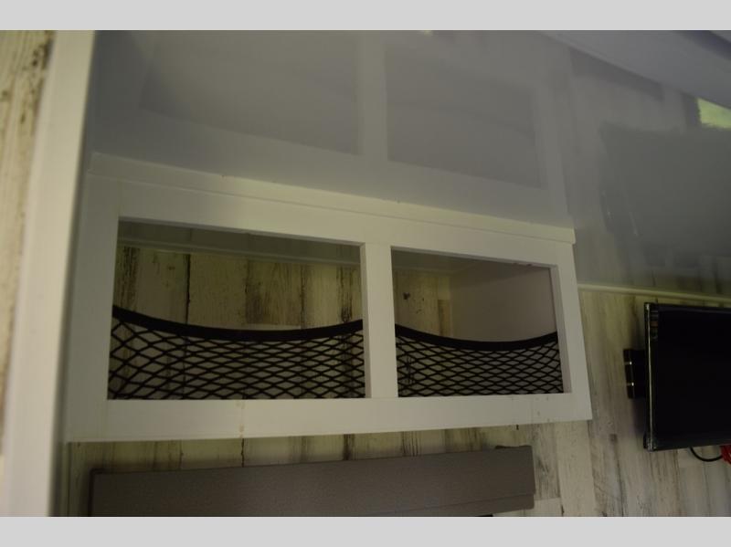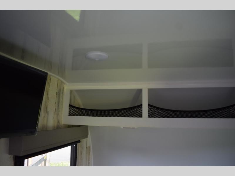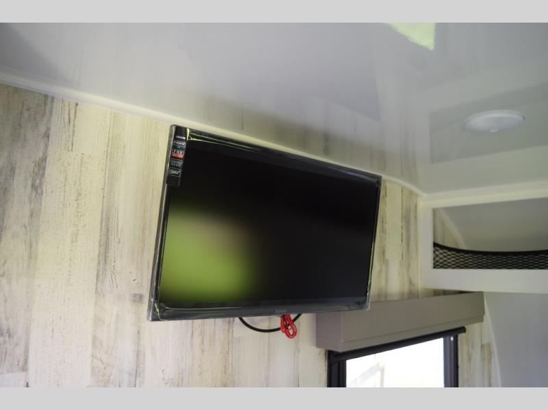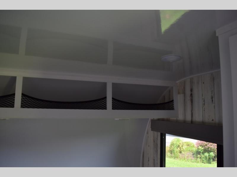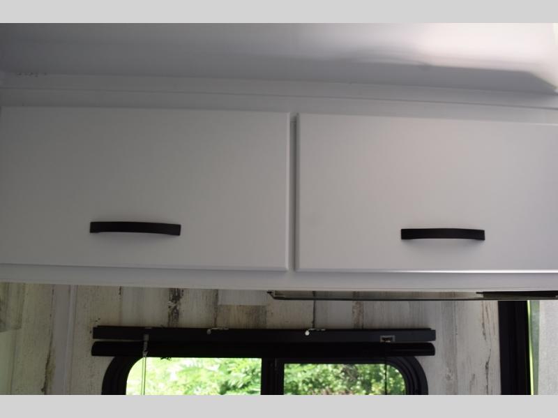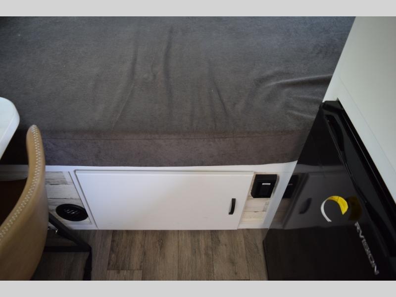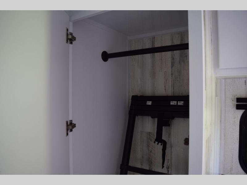 If you're looking for a lightweight trailer with a little more comfort, take a look at this one! There is a 60" x 77" bed to sleep on each night, along with a booth dinette that converts to a 78" x 30" bed and an upper 78" x 27" bunk, allowing you to sleep up to five! The kitchen includes a two burner stove, countertop and 12V refrigerator to keep food fresh. This unit also features four side windows, black roller shades, and a desk with desk drawers if you need to get some work done.
