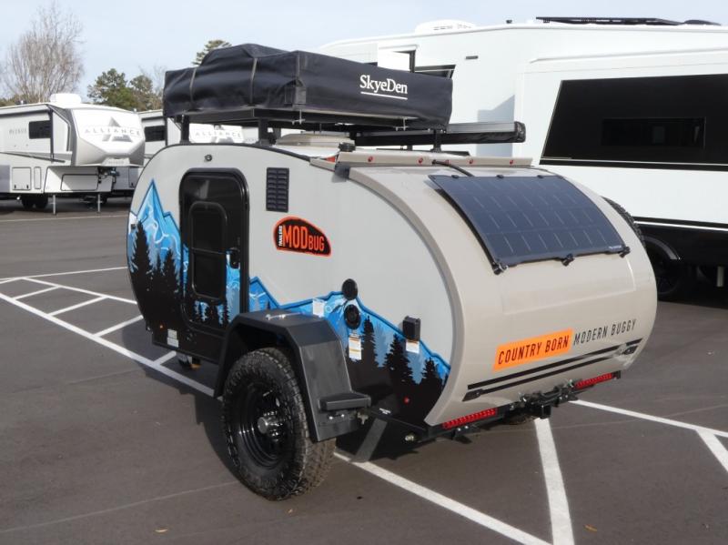 With the Little Buggy teardrop trailer by Modern Buggy RV, you will have all-terrain tires with 14" ground clearance allowing you to venture on bumpy, muddy and off-the-beaten path roads. Full of modern amenities including LED lights, outlets, and USB charging stations along with LightLeafSolar power green energy to help preserve the places that you love to explore. And the teardrop is built on an industrial strength, high quality custom aluminum frame, and is put together with AZDEL walls and a custom aluminum luggage rack with 600 lbs. of support. Get out and explore today with the Little Buggy that meant to climb on and carry all of your gear for any adventure you dream, and it can be towed behind a car!