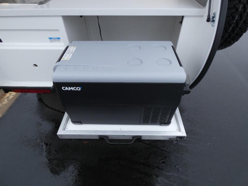 Whether you have a car, small SUV or a larger vehicle, you will be able to tow this Little Buggy off-road and to a local campground, the choices is yours! There is sleeping space for two adults on a memory foam mattress, and storage for your necessities with three cubbies and four enclosed cabinets inside, all built with premium birch wood. More storage can be found in the front exterior box made of steel for either your clothing, dry food or gear. The roof rack allows you to add your rooftop tent, and/or carry your paddle boards, bikes or more camping gear. And the outside galley gives you a place to make meals, place your cooler on the lock-in/lock-out cooler/freezer, and store dishes in the enclosed cabinets, and kitchen cabinets.