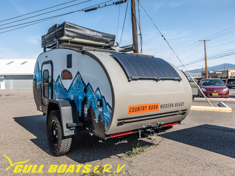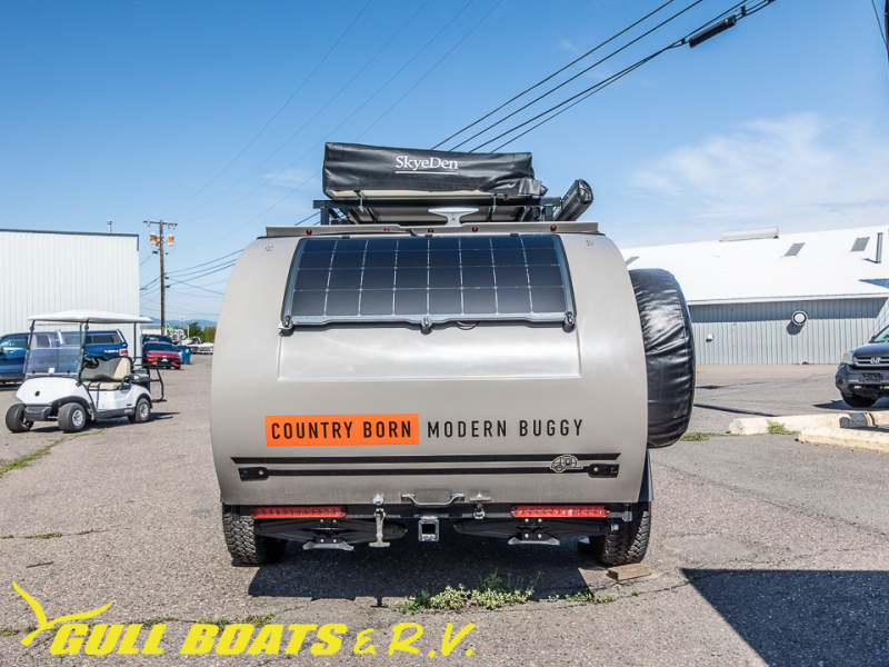 With the Little Buggy teardrop trailer by Modern Buggy RV, you will have all-terrain tires with 14" ground clearance allowing you to venture on bumpy, muddy and off-the-beaten path roads. Full of modern amenities including LED lights, outlets, and USB charging stations along with LightLeafSolar power green energy to help preserve the places that you love to explore. And the teardrop is built on an industrial strength, high quality custom aluminum frame, and is put together with AZDEL walls and a custom aluminum luggage rack with 600 lbs. of support. Get out and explore today with the Little Buggy that meant to climb on and carry all of your gear for any adventure you dream, and it can be towed behind a car!