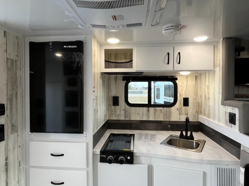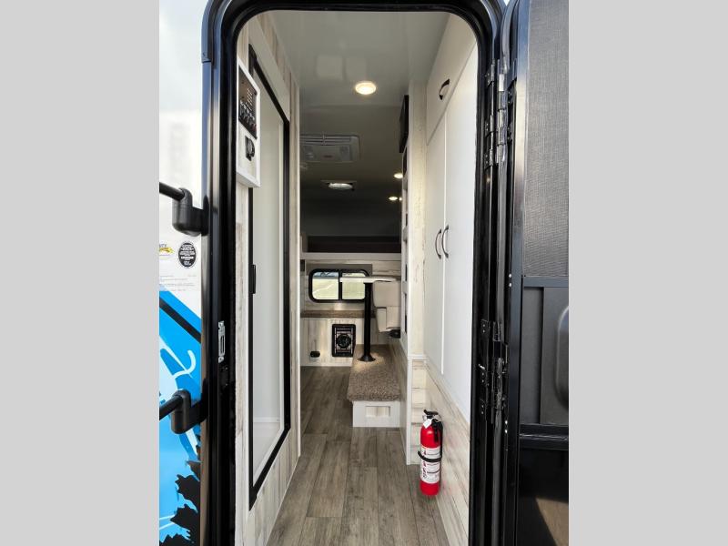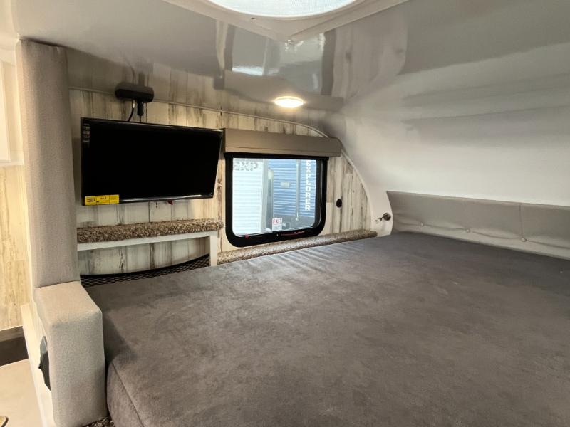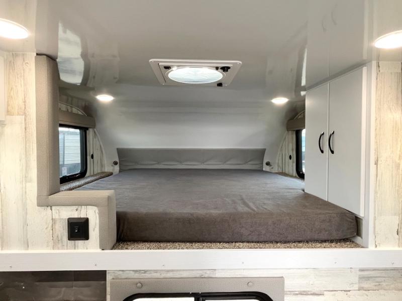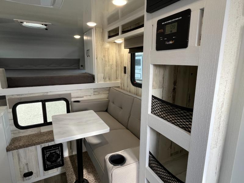 Expand your horizons in this spacious truck camper! A dinette bed will provide a place to relax after you've made lunch on the two burner stove, and this space can double as sleeping space for a guest. And you're sure to get a great night's rest on the front bed. The 2-way Max Air vent will provide great ventilation, and you can choose to add the optional 13.5 BTU rooftop A/C to cool you off even further. And you are sure to appreciate the tankless on-demand water heater will provide hot water when you need it!