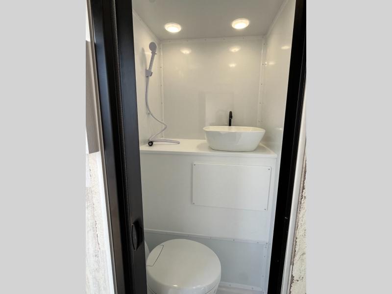 The Modern Buggy truck camper is constructed with Azdel walls, roof and ceiling for added durability, plus they are off-grid ready with torsion axles, all-terrain tires, and optional solar power. You will love the stainless steel sink with a faucet, and the USB stations will keep your electronics powered up. There is an outside spray port shower box outside, and you can choose an optional power jack for hassle-free set up!