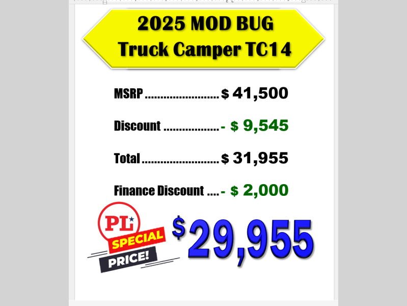 New 2025 Modern Buggy RV Modern Buggy TC14 Truck Camper