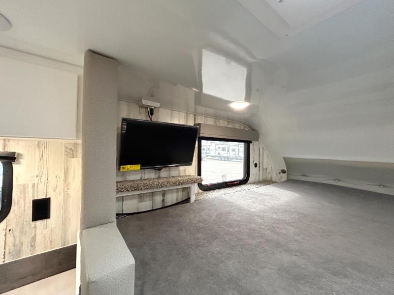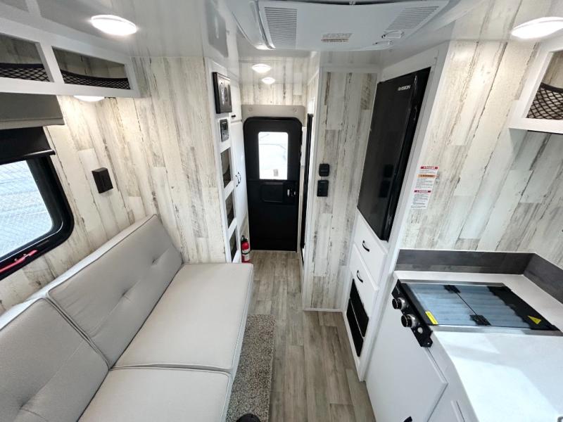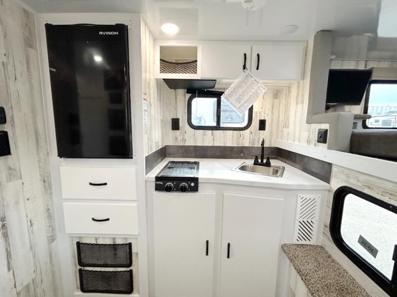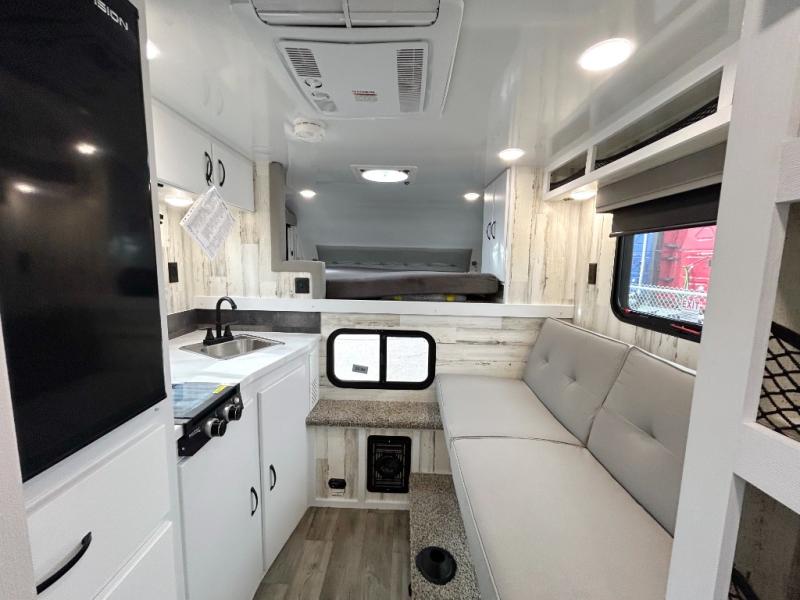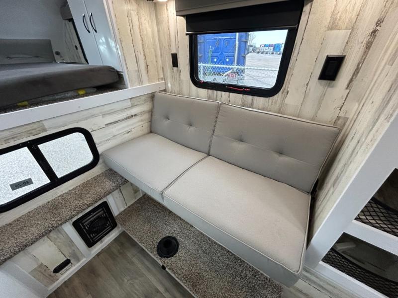 Expand your horizons in this spacious truck camper! A dinette bed will provide a place to relax after you've made lunch on the two burner stove, and this space can double as sleeping space for a guest. And you're sure to get a great night's rest on the front bed. The 2-way Max Air vent will provide great ventilation, and you can choose to add the optional 13.5 BTU rooftop A/C to cool you off even further. And you are sure to appreciate the tankless on-demand water heater will provide hot water when you need it!