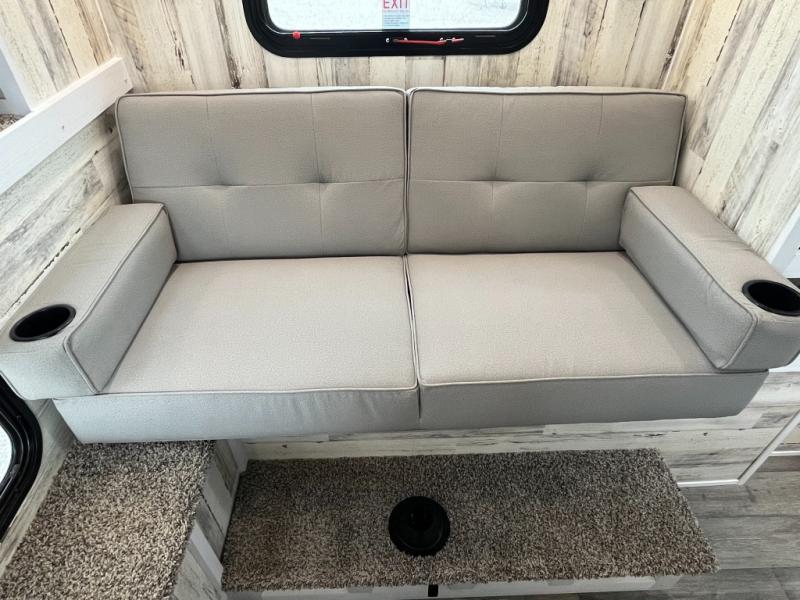 The Modern Buggy truck camper is constructed with Azdel walls, roof and ceiling, double rolled R7 insulated walls, and a composite subfloor for added strength and durability. You will love the look of the Stained Birch or White Sands cabinetry inside, and the USB stations will keep your electronics powered up. There are manual jacks outside, along with an outside spray port shower box and a heavy duty grab handle to safety enter the unit. Optional upgrades such as, a lithium battery, electric jacks and a power awning can be added to further customize your truck camper!