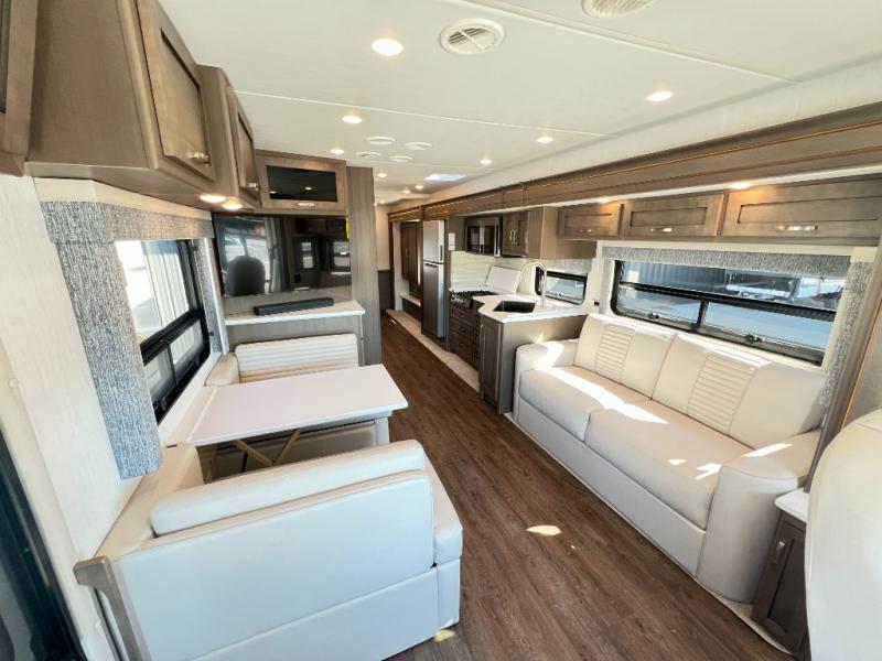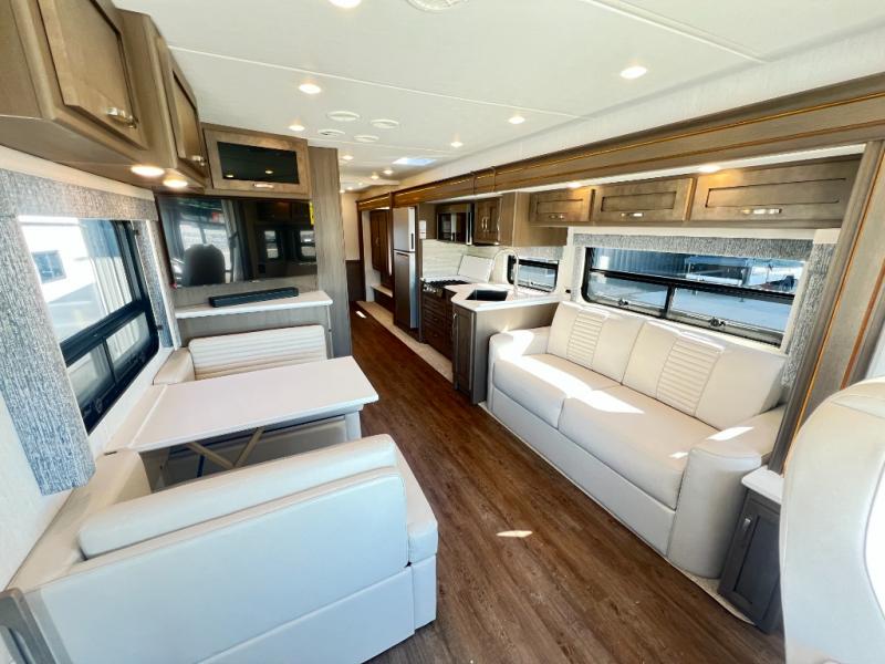 Each Bay Star Class A gas motorhome by Newmar delivers a smooth ride thanks to the standard electronic stability control, along with the 7.3-liter V8 engine with 350 HP and 468 lb./ft. of torque. The exterior is sure to turn heads with its full-paint Masterpiece Finish, and you'll have three interior decor choices and three wood choices to truly make the coach your own. Each model includes newly styled Williamsburg furniture, luxurious vinyl plank flooring, polished solid surface countertops in the kitchen, plus many more comforts. Head outside to find lit basement storage, a 5.5kW Onan generator with remote switch, and smart level hydraulic leveling jacks with a Bluetooth compatible touch pad for set up easy as 1-2-3! You can further customize your coach with the many options that are offered!