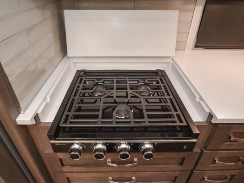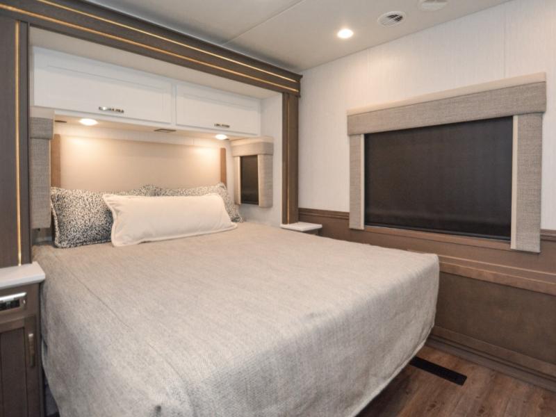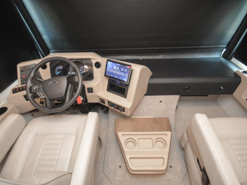 Each Bay Star Class A gas motorhome by Newmar delivers a smooth ride thanks to the standard electronic stability control, along with the 7.3-liter V8 engine with 350 HP and 468 lb./ft. of torque. Each model includes newly styled Williamsburg furniture, luxurious vinyl plank flooring, polished solid surface countertops in the kitchen, plus many more comforts. Head outside to find lit basement storage, a 5.5kW Onan generator with remote switch, and smart level hydraulic leveling jacks with a Bluetooth compatible touch pad for set up easy as 1-2-3!