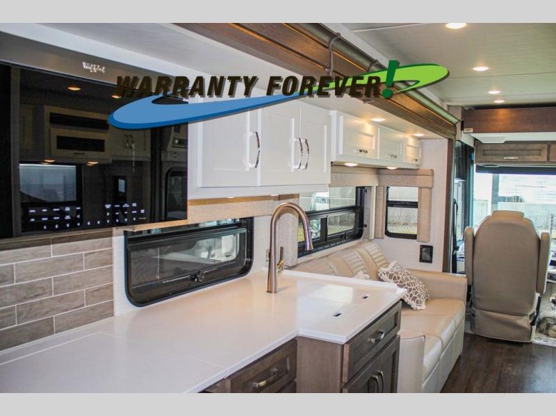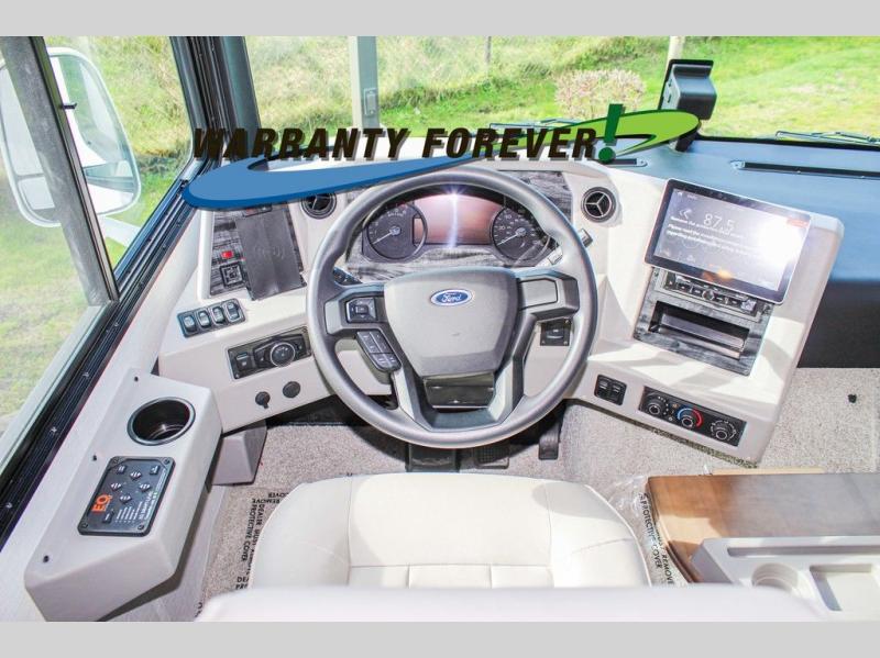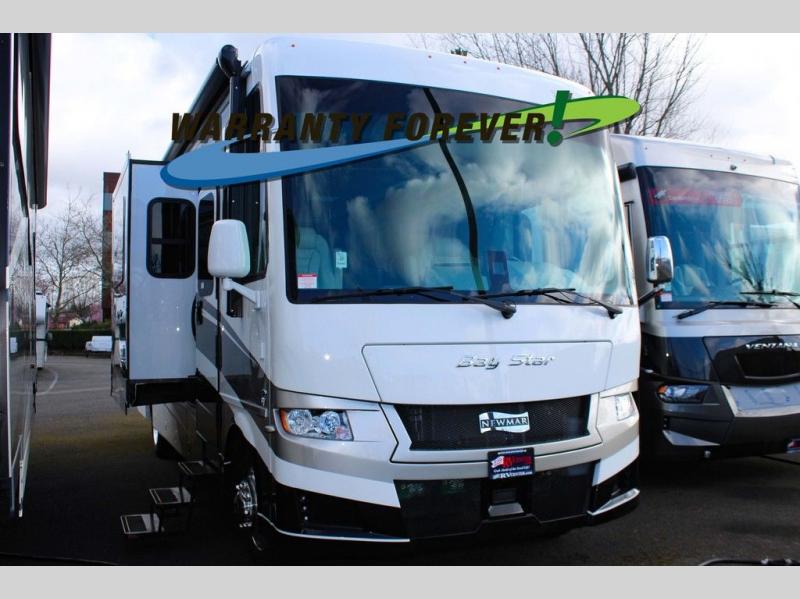 Each Bay Star Class A gas motorhome by Newmar delivers a smooth ride thanks to the standard electronic stability control, along with the 7.3-liter V8 engine with 350 HP and 468 lb./ft. of torque. The exterior is sure to turn heads with its full-paint Masterpiece Finish, and you'll have three interior decor choices and three wood choices to truly make the coach your own. Each model includes newly styled Williamsburg furniture, luxurious vinyl plank flooring, polished solid surface countertops in the kitchen, plus many more comforts. Head outside to find lit basement storage, a 5.5kW Onan generator with remote switch, and smart level hydraulic leveling jacks with a Bluetooth compatible touch pad for set up easy as 1-2-3! You can further customize your coach with the many options that are offered!