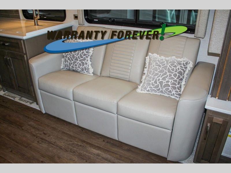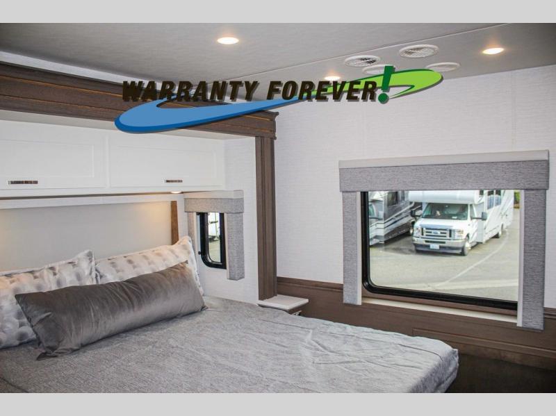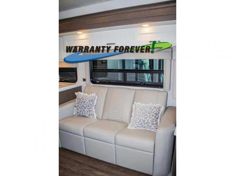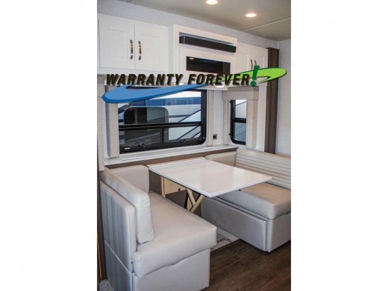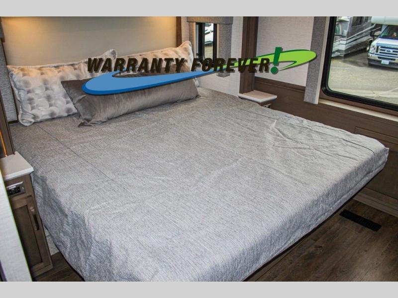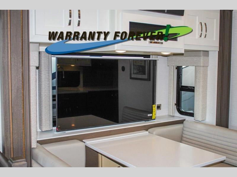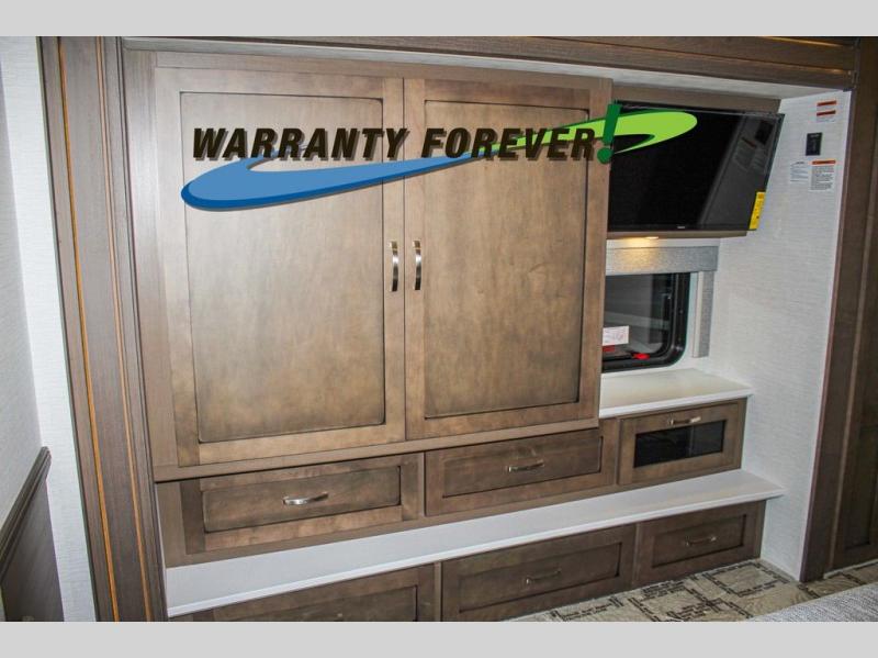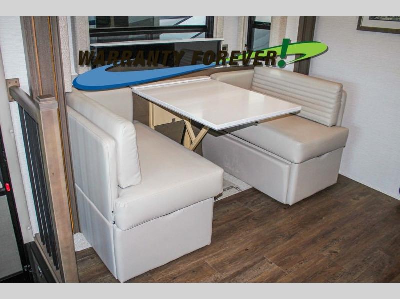Make each trip luxurious in this spacious coach that can sleep five to six people each night. You will wake up feeling refreshed after sleeping on the king bed slide out, and your guests can put away their bedding after sleeping on the sofa comfort lounge and booth dinette. Breakfast can be made on the three burner cooktop or in the 30" convection microwave. You will appreciate the pantry and a Norcold 10 cu. ft. refrigerator for your food, plus there is a second pantry/storage that will be perfect for snacks. This model also includes a shirt wardrobe in the bedroom, along with a dresser so you can bring along your favorite outfits. And you'll never go bored with Samsung LED TV's in the bedroom and living area!