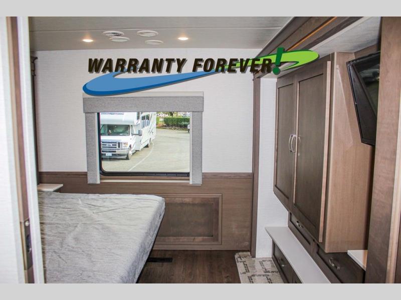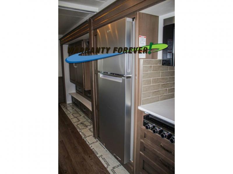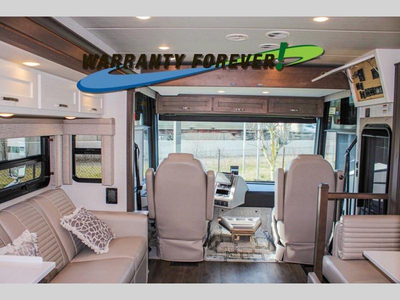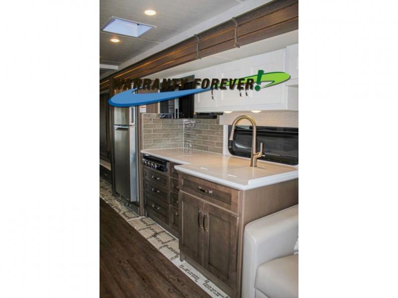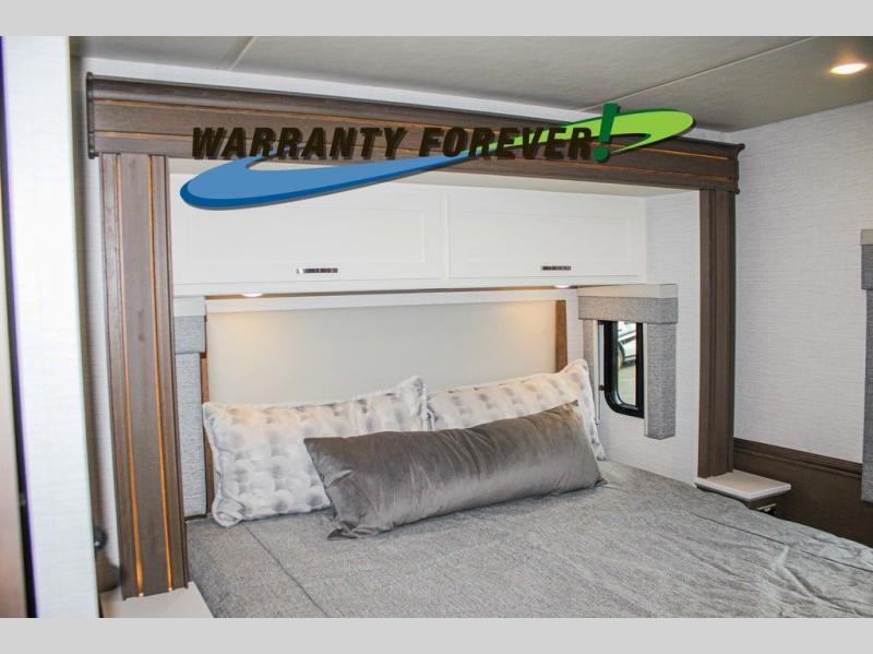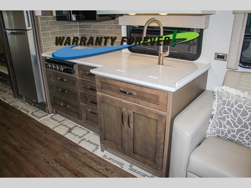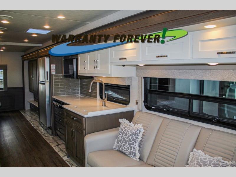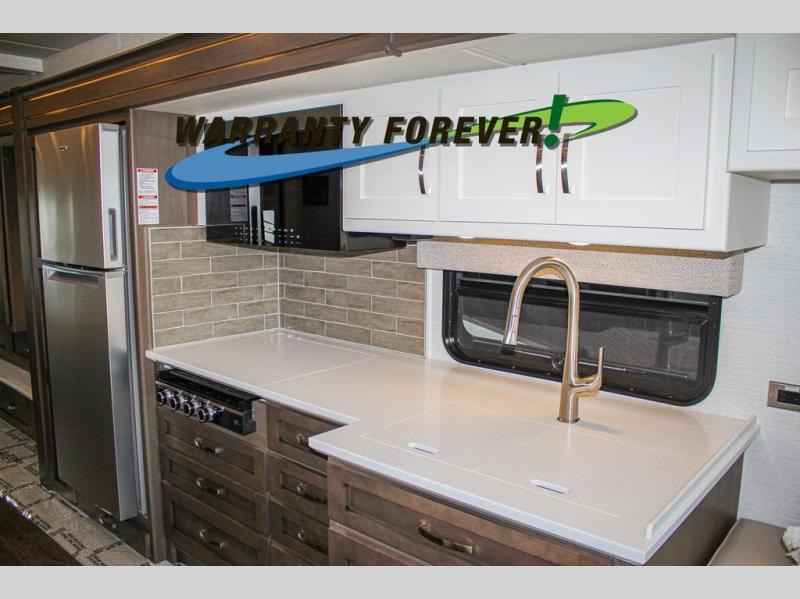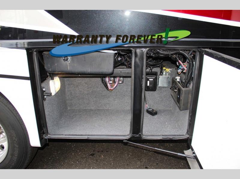 Make each trip luxurious in this spacious coach that can sleep five to six people each night. You will wake up feeling refreshed after sleeping on the king bed slide out, and your guests can put away their bedding after sleeping on the sofa comfort lounge and booth dinette. Breakfast can be made on the three burner cooktop or in the 30" convection microwave. You will appreciate the pantry and a Norcold 10 cu. ft. refrigerator for your food, plus there is a second pantry/storage that will be perfect for snacks. This model also includes a shirt wardrobe in the bedroom, along with a dresser so you can bring along your favorite outfits. And you'll never go bored with Samsung LED TV's in the bedroom and living area!