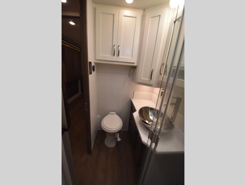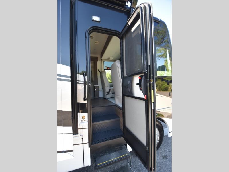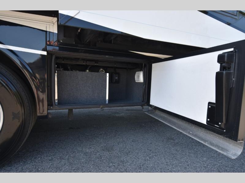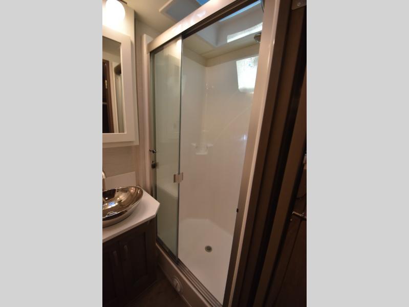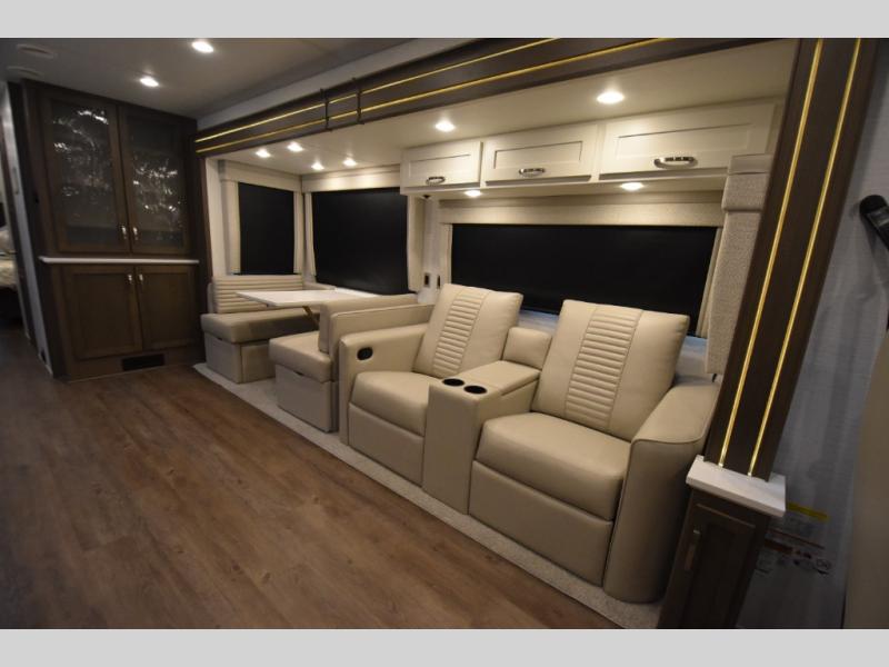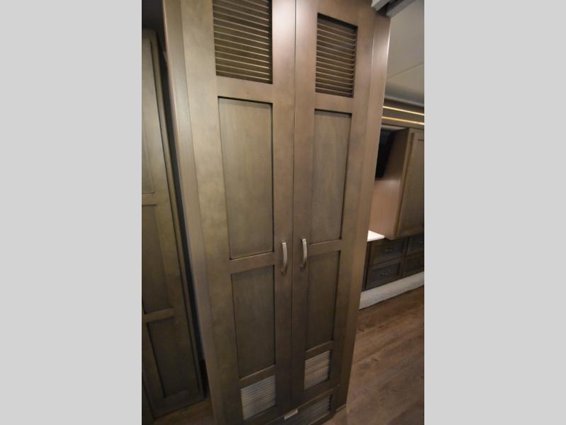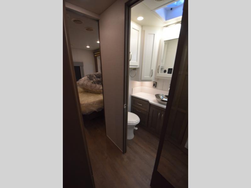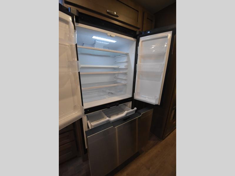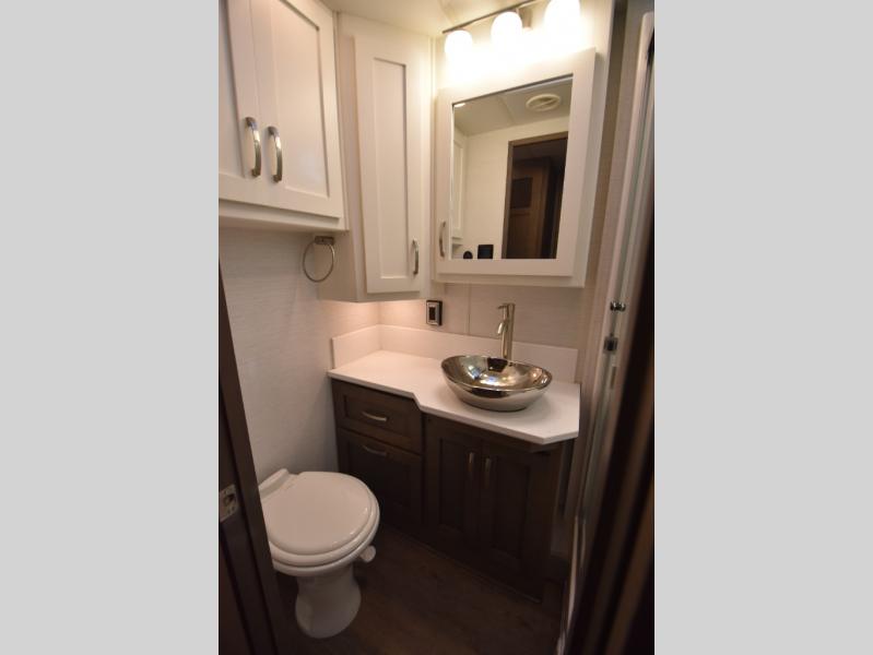 Four slide outs make this motorhome both spacious and comfortable for all your excursions! The USB charger at the passenger area will be a big plus if you need to telecommute on the way to the campground, and your guests can stay comfortable on the two comfort lounge sofas or the booth dinette. This model includes a wardrobe right across from the full bath that can be optioned out for an optional Splendide stacked washer and dryer, and the rear private bedroom will feel just like home with its king bed and shirt wardrobe. There is even a bedroom LED TV, along with the living room LED TV on power lift!