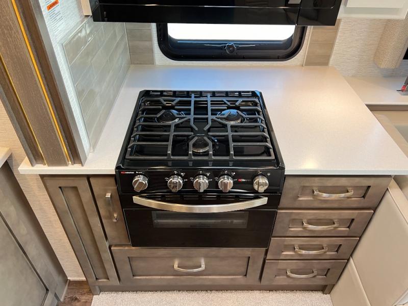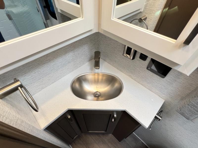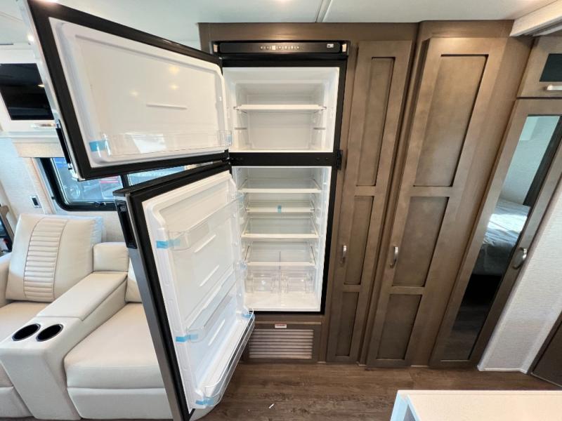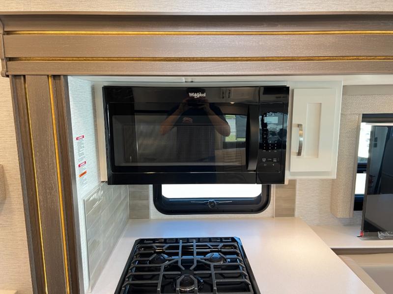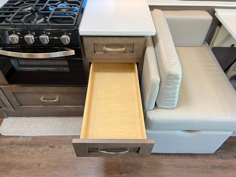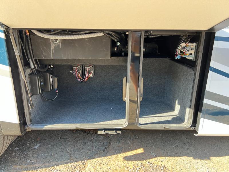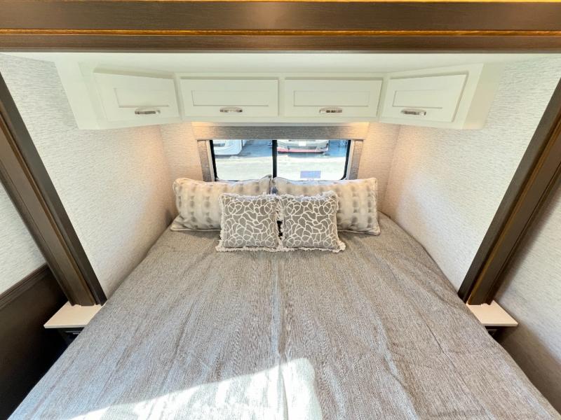 What could be better than traveling the country with your family or friends? Traveling in this coach with at-home comforts! You will find double slide outs that will provide more space to move about, and the full rear corner bath is sure to come in handy after a day outdoors hiking or biking. You can get cozy on the sofa comfort lounge that sits directly across from the Samsung TV on power lift. If you get hungry, just whip up a meal on the three burner cooktop, and use the flip-up countertop to cut fresh veggies. The queen bed slide out includes a folding mattress, plus you'll enjoy your own 32" Samsung TV in the bedroom to watch movies in bed.