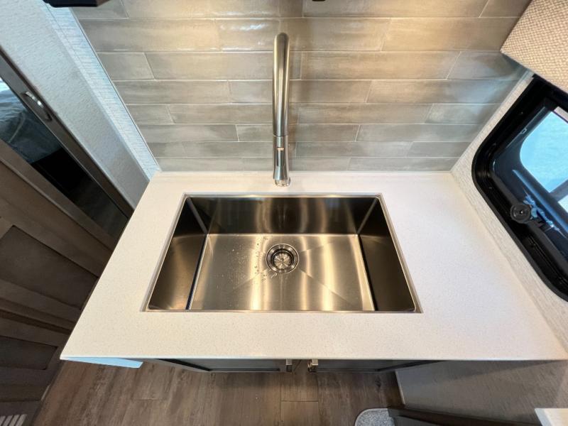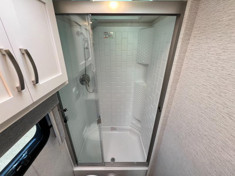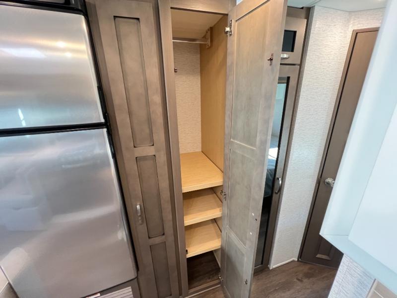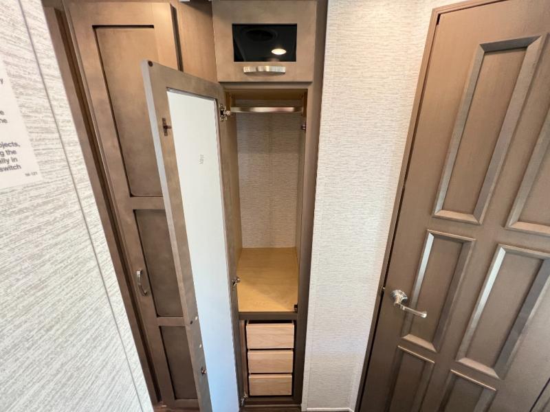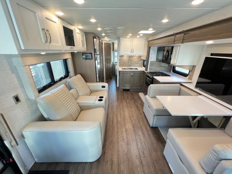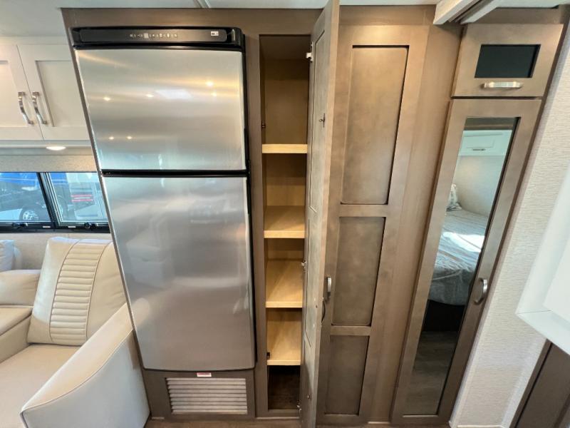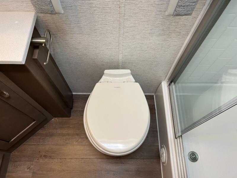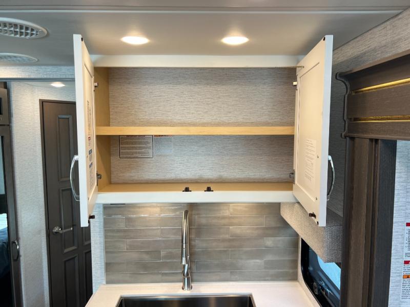 What could be better than traveling the country with your family or friends? Traveling in this coach with at-home comforts! You will find double slide outs that will provide more space to move about, and the full rear corner bath is sure to come in handy after a day outdoors hiking or biking. You can get cozy on the sofa comfort lounge that sits directly across from the Samsung TV on power lift. If you get hungry, just whip up a meal on the three burner cooktop, and use the flip-up countertop to cut fresh veggies. The queen bed slide out includes a folding mattress, plus you'll enjoy your own 32" Samsung TV in the bedroom to watch movies in bed.
