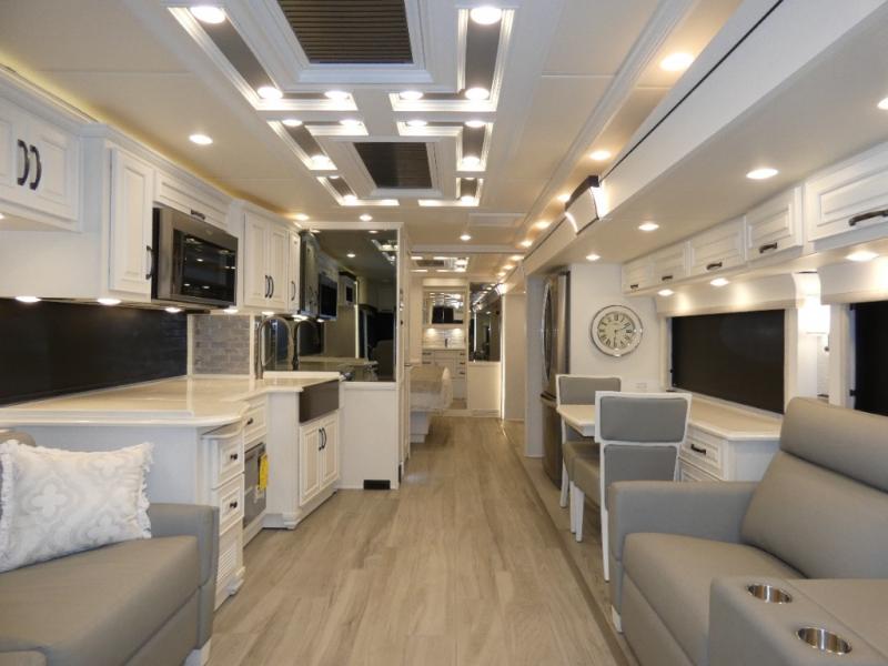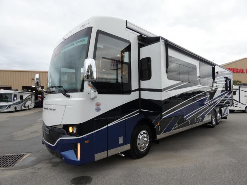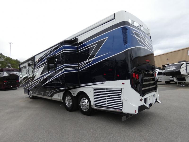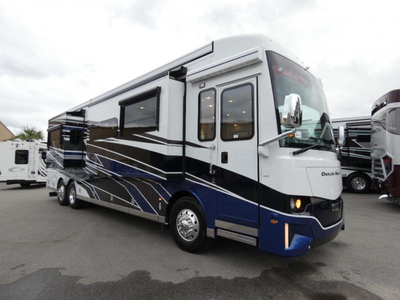 Are you looking to upgrade your motorhome to a more luxurious unit? Look no further than this Dutch Star Class A diesel motorhome. You will love the space provided by the full-wall slide and two additional slides, plus the rear bath cathedral ceiling will add extra height. Take a rest on the pillowtop king bed or relax on the theater seats. There is a passenger workstation and a hide-a-leaf dinette if you're needing to get some work done while on vacation, and the power awning outside will provide shade if you're wanting to work in fresh air. Don't worry about stopping for food because this model includes a Whirlpool 19.7-cu. ft. refrigerator that will allow you to stock up for the week, and you can cook with the all-electric induction cooktop or stainless steel convection microwave with an air fryer feature!
