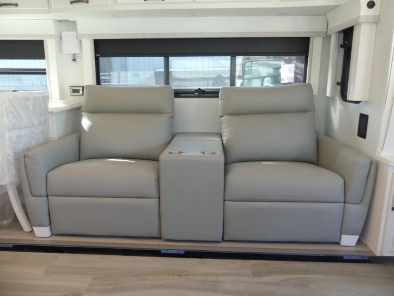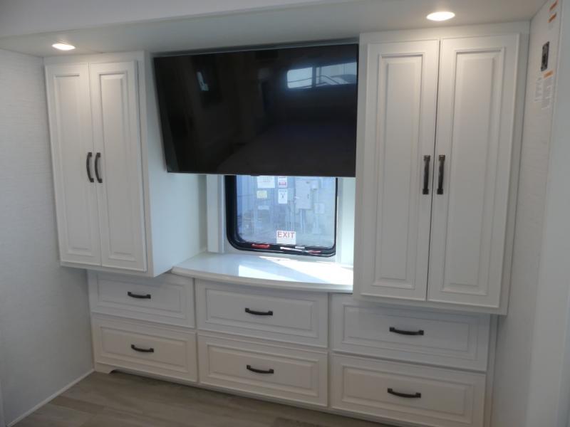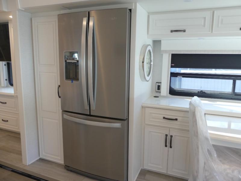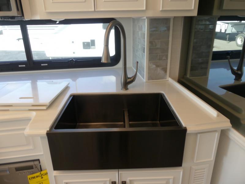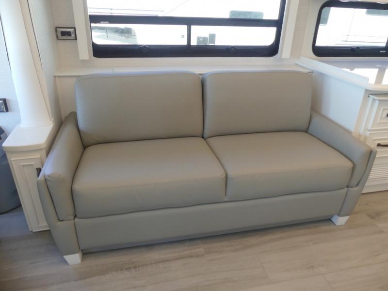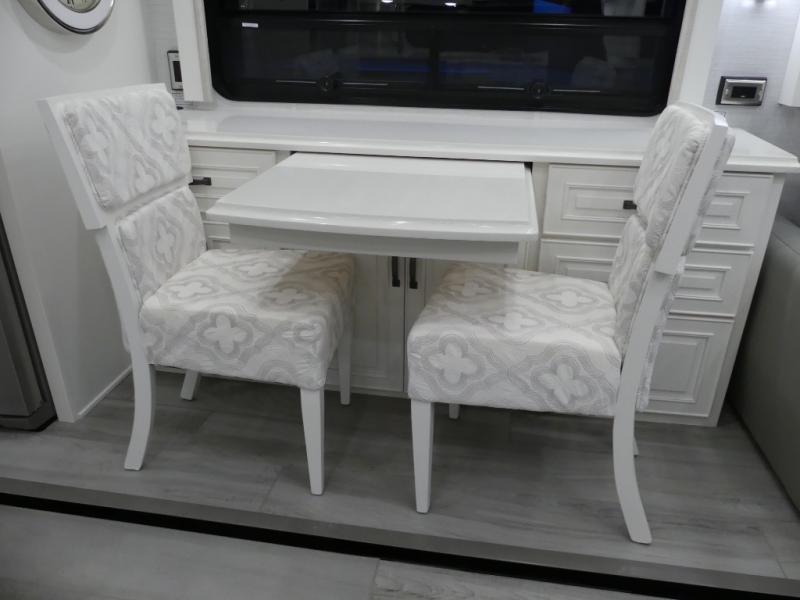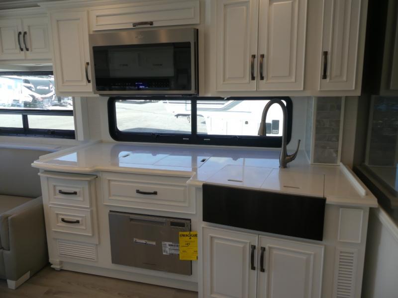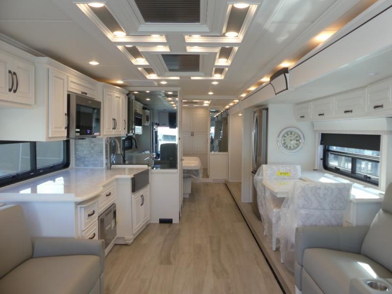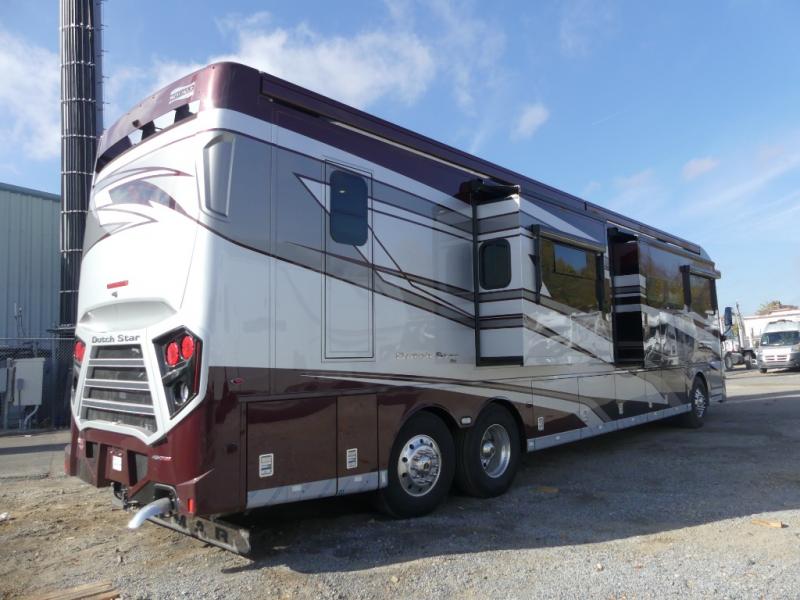 Luxury is waiting for you in this spacious Dutch Star Class A diesel motorhome. The full-wall slide plus two additional slides will open up the whole unit for a more at-home feel. Relax on the theater seats or read a book on the jackknife sofa. The hide-a-leaf dinette will be the perfect place to catch up on some work while you're away from home. Easily prepare breakfast, lunch, and dinner on the all-electric induction cooktop, or use the convenient stainless steel convection microwave with an air fryer feature. This model features a master suite with a pillowtop king bed, dual wardrobes and a dresser, plus an LED TV. You will love the rear bath cathedral ceiling that will add additional height, plus there is plenty of storage space and two bath sinks so that you and your spouse can freshen up at once!