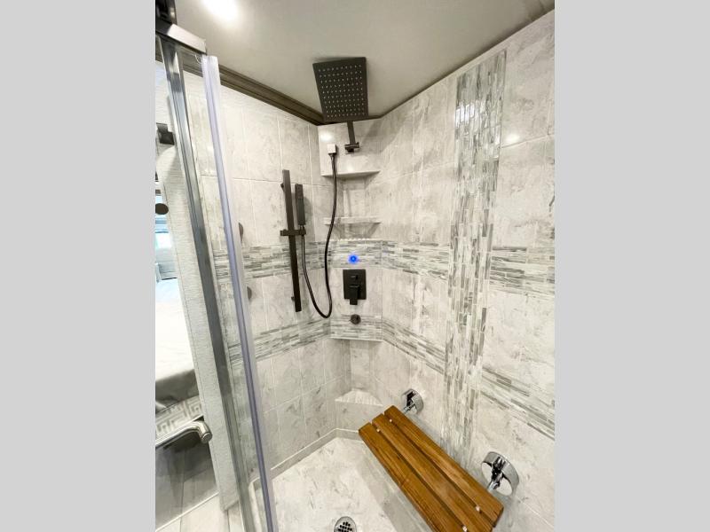 Luxury is waiting for you in this spacious Dutch Star Class A diesel motorhome that can comfortably sleep six each night. The full-wall slide plus two additional slides will open up the whole unit for a more at-home feel. Relax on the hide-a-bed sofa or read a book on the jackknife sofa. The hide-a-leaf dinette will be the perfect place to catch up on some work while you're away from home. Easily prepare breakfast, lunch, and dinner on the all-electric induction cooktop, or use the convenient stainless steel convection microwave with an air fryer feature. This model features a master suite with a pillowtop king bed, dual wardrobes and a dresser, plus an LED TV. You will love the rear bath cathedral ceiling that will add additional height, plus there is plenty of storage space and two bath sinks so that you and your spouse can freshen up at once! Specifications shown are with the standard Freightliner tag axle chassis. See dealer for details if optional Spartan K2 tag axle chassis is selected.
