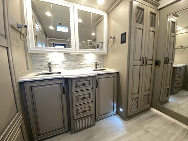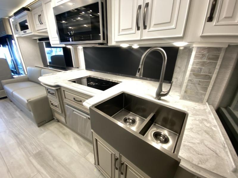 Luxury is waiting for you in this spacious Dutch Star Class A diesel motorhome that can comfortably sleep six each night. The full-wall slide plus two additional slides will open up the whole unit for a more at-home feel. Relax on the hide-a-bed sofa or read a book on the jackknife sofa. The hide-a-leaf dinette will be the perfect place to catch up on some work while you're away from home. Easily prepare breakfast, lunch, and dinner on the all-electric induction cooktop, or use the convenient stainless steel convection microwave with an air fryer feature. This model features a master suite with a pillowtop king bed, dual wardrobes and a dresser, plus an LED TV. You will love the rear bath cathedral ceiling that will add additional height, plus there is plenty of storage space and two bath sinks so that you and your spouse can freshen up at once!
