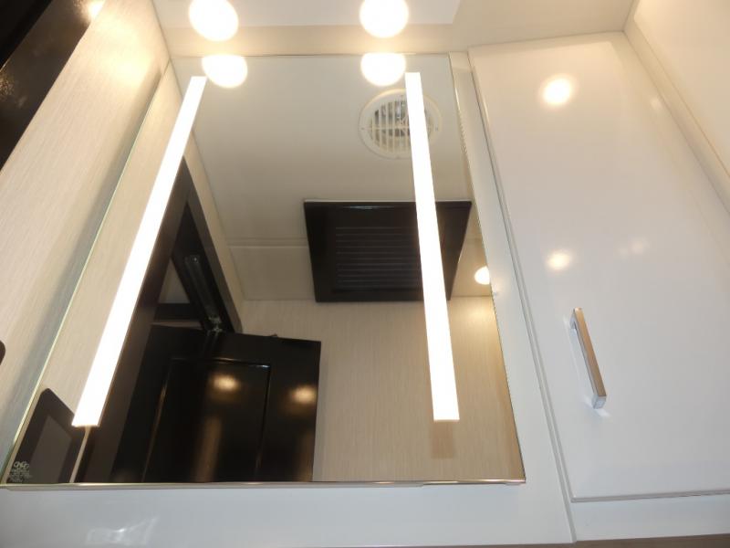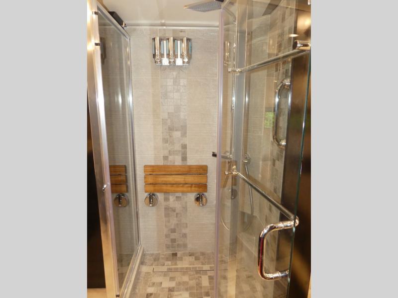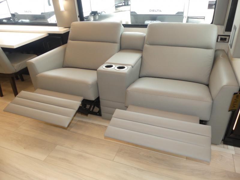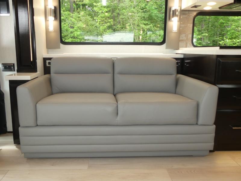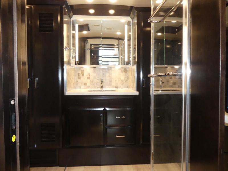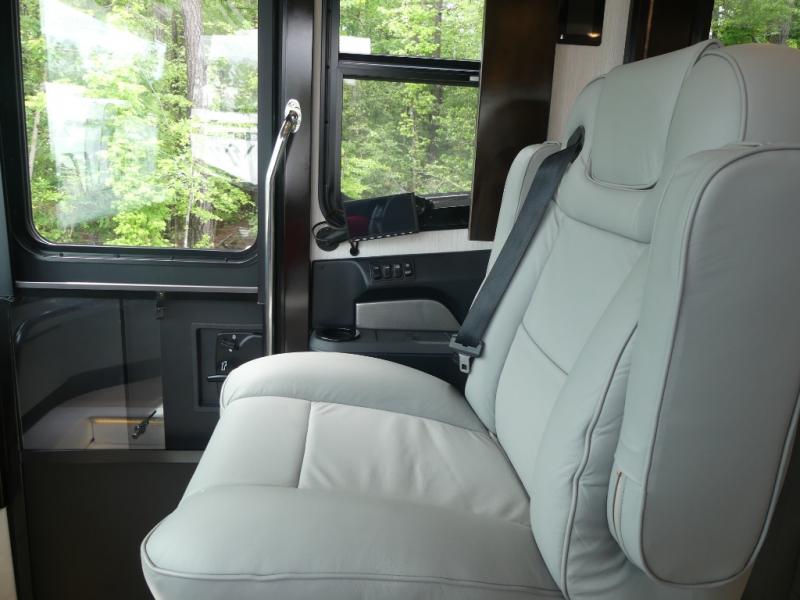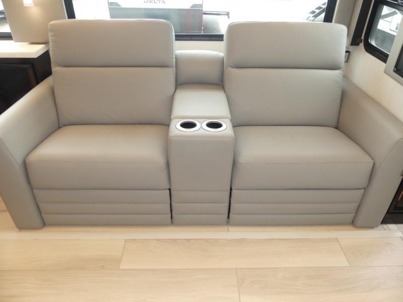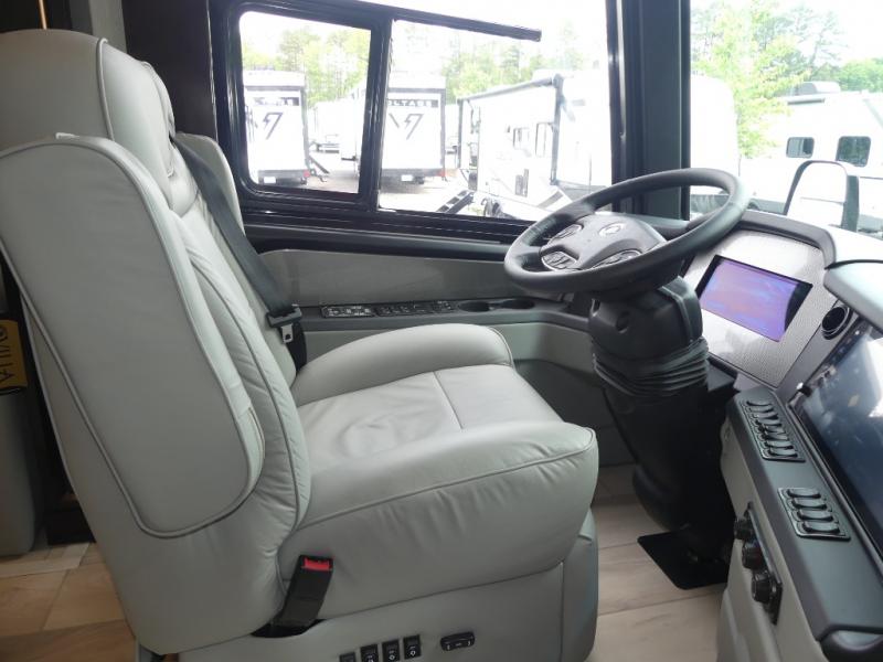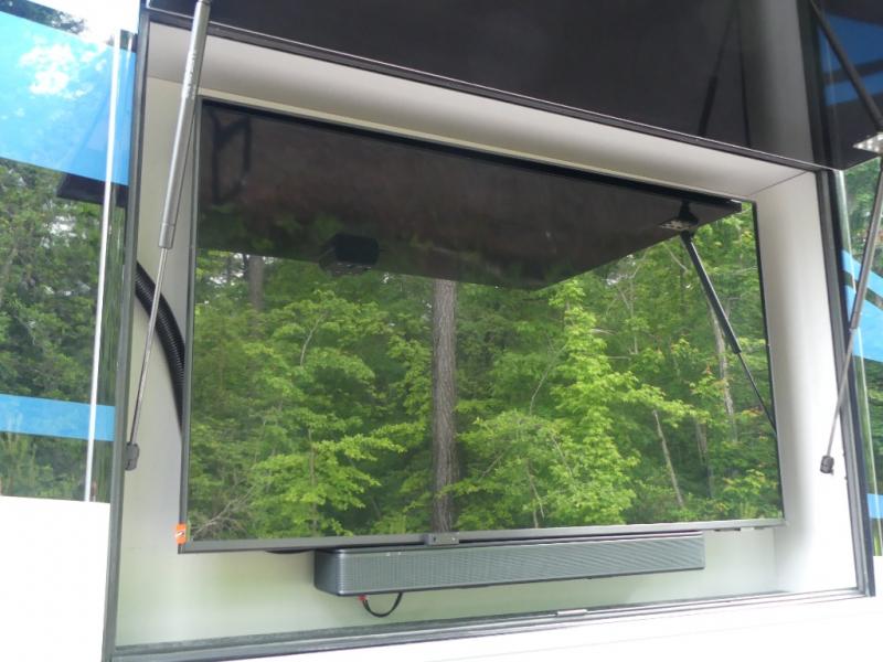 Don't pass up your opportunity to travel in pure luxury with this motorhome! The master suite has a king bed slide for a good night's rest across from a dresser with a Samsung LED TV and shirt wardrobes on either side. Attached to the bedroom is your very own full rear bathroom which has a 40" x 32" shower with a seat next to a linen closet and wardrobe, as well as a Splendide two-piece washer and dryer next to the vanity sink. The chef will have everything they need to prepare delicious home cooked meals including a cabinet pull-out, a stainless steel 30" convection microwave with air fryer feature and a Whirlpool 19.7 cu. ft. refrigerator to keep the perishables fresh, plus the half bathroom is by the kitchen for quick bathroom breaks while cooking. Enjoy your meals at the hide-a-leaf dinette and relax on either the theater seats or the 62" jackknife sofa while watching your favorite movies on the Samsung LED TV on power lift!