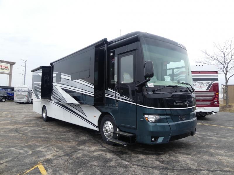 Step right up to the diesel pusher lifestyle with Newmar's most affordable Class A diesel coach, the Northern Star! You will be met with a luxurious interior that includes maple cabinet doors, polished solid-surface countertops, Villa Comfort Fit furniture, and MCD window shades to name a few comforts. The Full-Paint Masterpiece Finish is ultra sleek, and the diamond shield protection on the front cap will help against debris, bugs, and more. The driver is sure to appreciate the V-Ride drive axle suspension, along with the anti-lock braking system and Mobileye lane tracking and lane departure warning system for added safety. Each model also includes a Samsung LED TV in the living room and bedroom, a 10" Sony dash radio, a Bose soundbar sound system, and more entertainment features to ensure you'll never go bored on rainy days!