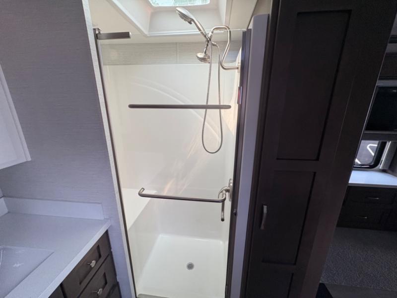 Full Bath with Dual Vanities and a large tile shower, creating a spa-like experience on the road.