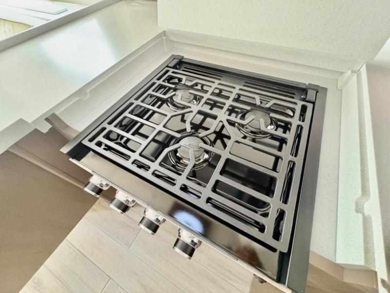 Gourmet Kitchen with solid-surface countertops, residential refrigerator, induction cooktop, convection microwave, and pull-out pantry for a premium cooking experience.