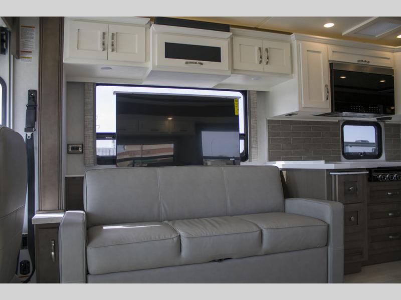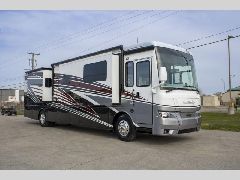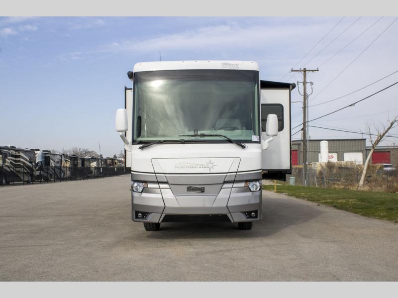 Step right up to the diesel pusher lifestyle with Newmar's most affordable Class A diesel coach, the Northern Star! You will be met with a luxurious interior that includes maple cabinet doors, polished solid-surface countertops, Villa Comfort Fit furniture, and MCD window shades to name a few comforts. The Full-Paint Masterpiece Finish is ultra sleek, and the diamond shield protection on the front cap will help against debris, bugs, and more. The driver is sure to appreciate the V-Ride drive axle suspension, along with the anti-lock braking system and Mobileye lane tracking and lane departure warning system for added safety. Each model also includes a Samsung LED TV in the living room and bedroom, a 10" Sony dash radio, a Bose soundbar sound system, and more entertainment features to ensure you'll never go bored on rainy days!