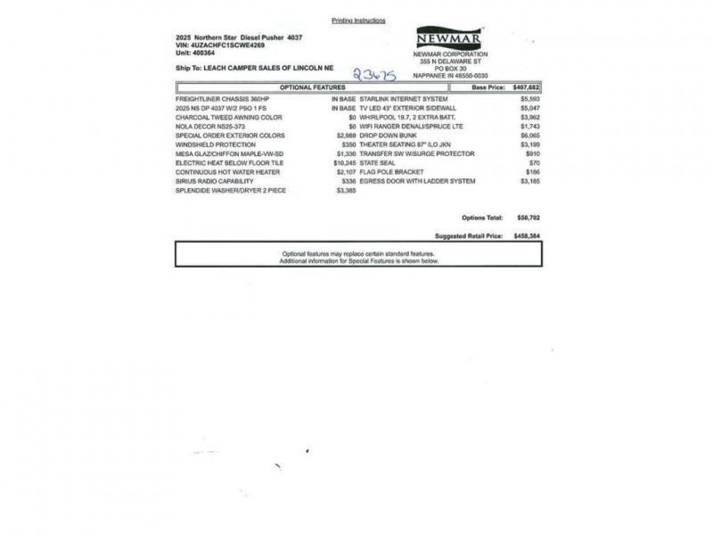 Newmar Northern Star Class A diesel motorhome 4037 highlights: