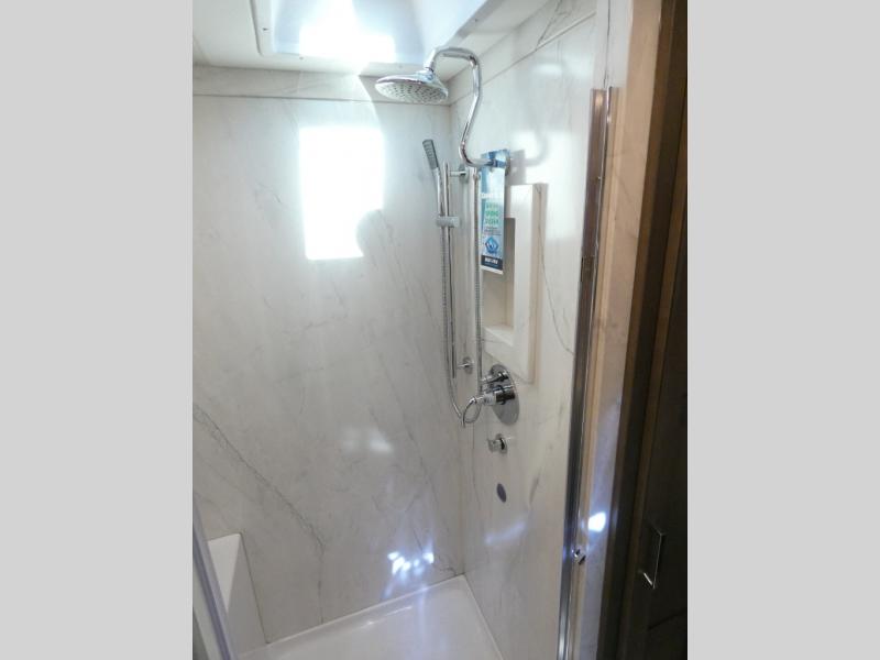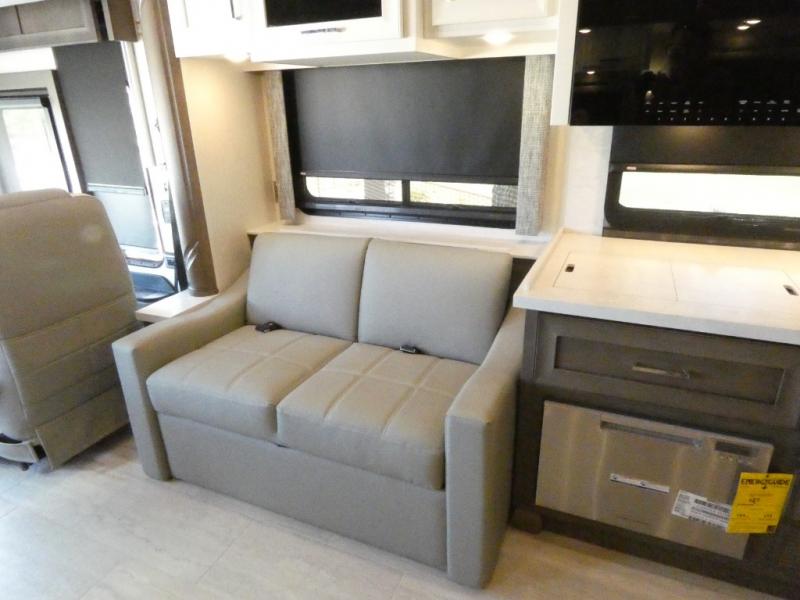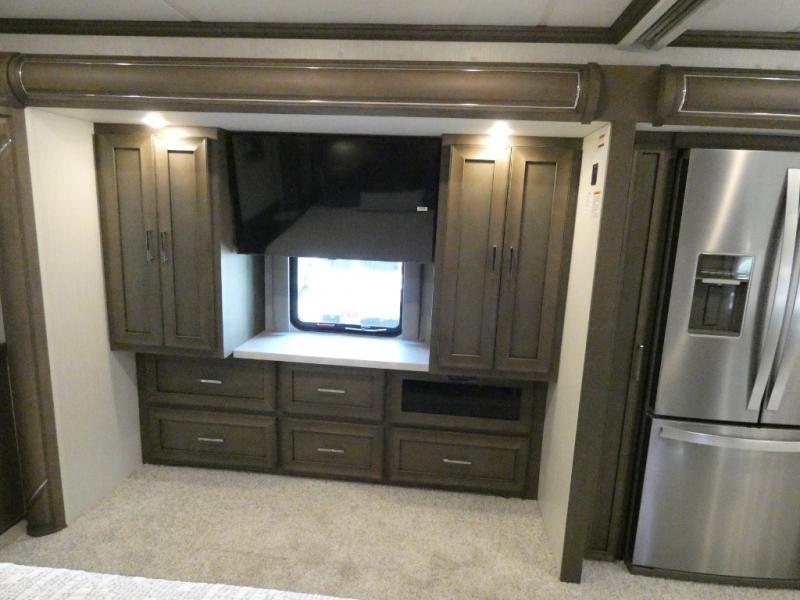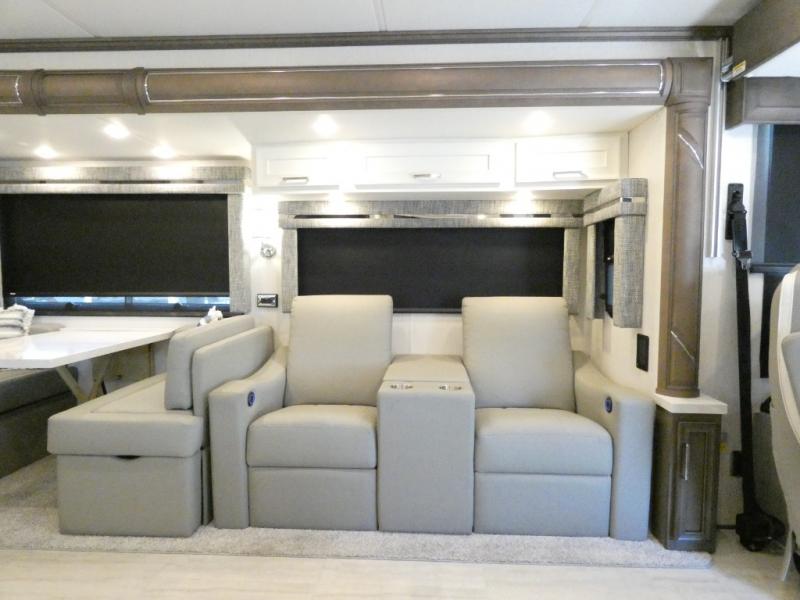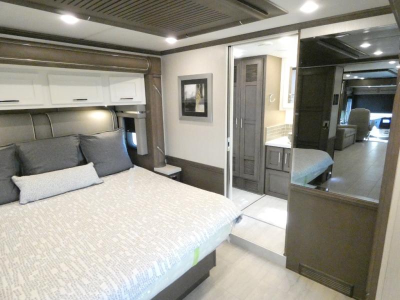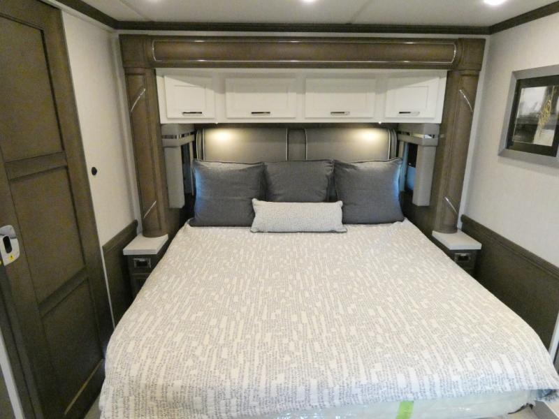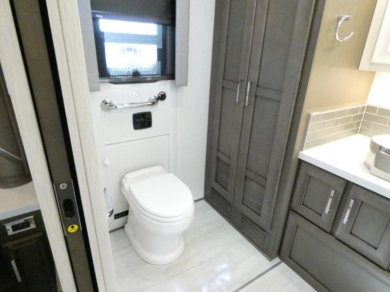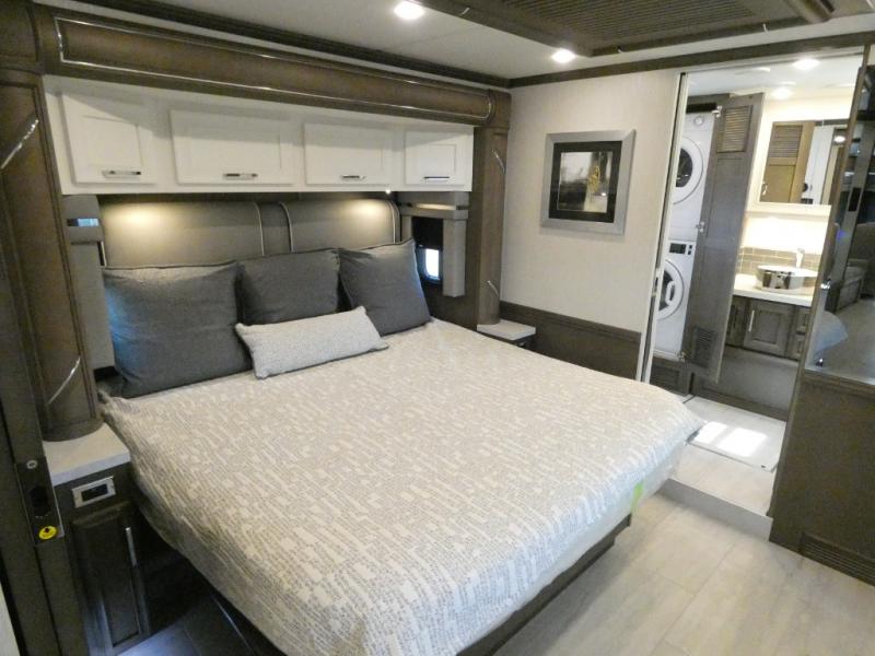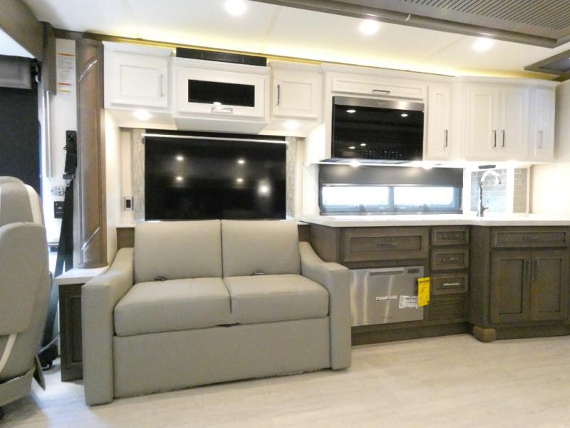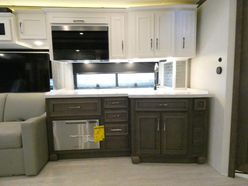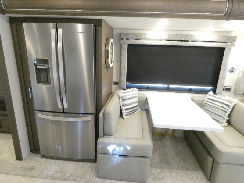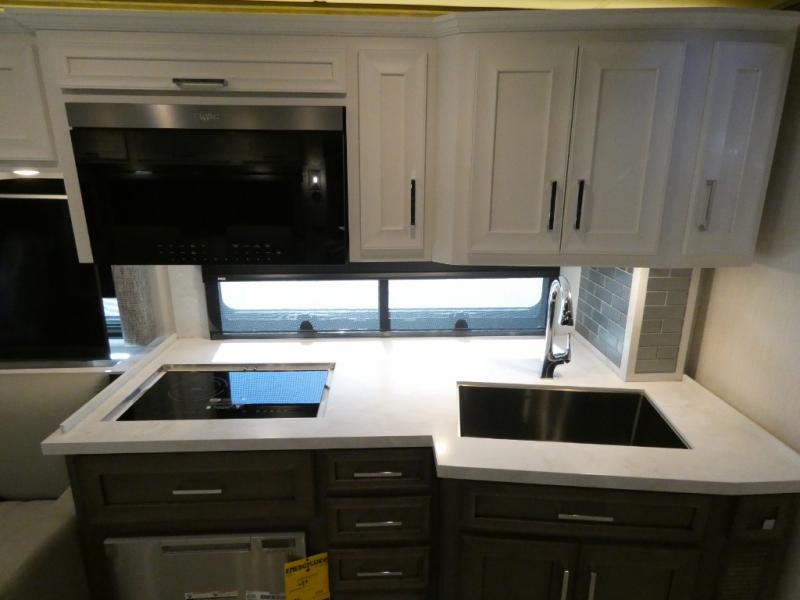 Packed with features and luxury to make each trip enjoyable, this coach is the one! You will love waking up each morning on your king bed across from dual wardrobes, a dresser, plus a bedroom LED TV. The spacious full rear bath includes a Fan-Tastic vent and a skylight to let natural light in, and the mid-ship half bath will be perfect for guests! Within the kitchen you'll find a stainless steel convection microwave and electric induction cooktop, along with a Whirlpool 19.7 cu. ft. refrigerator.