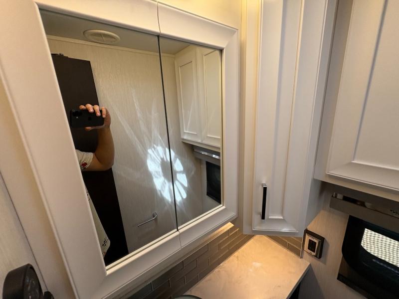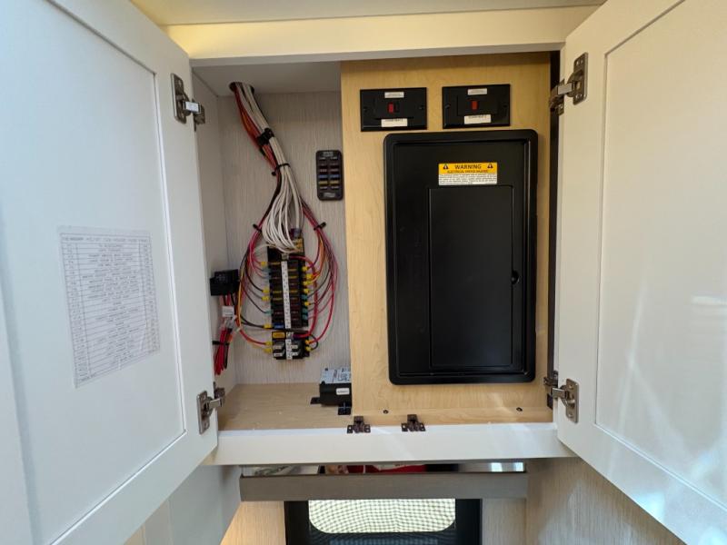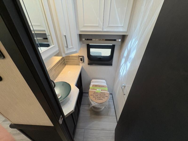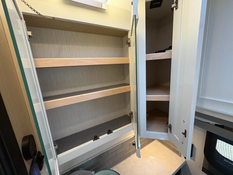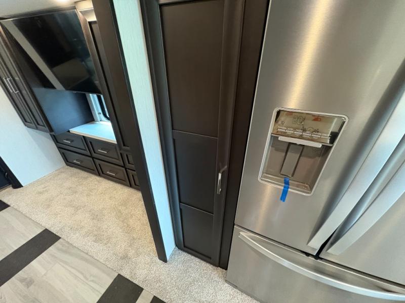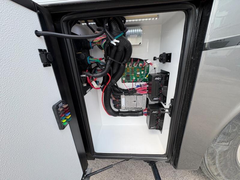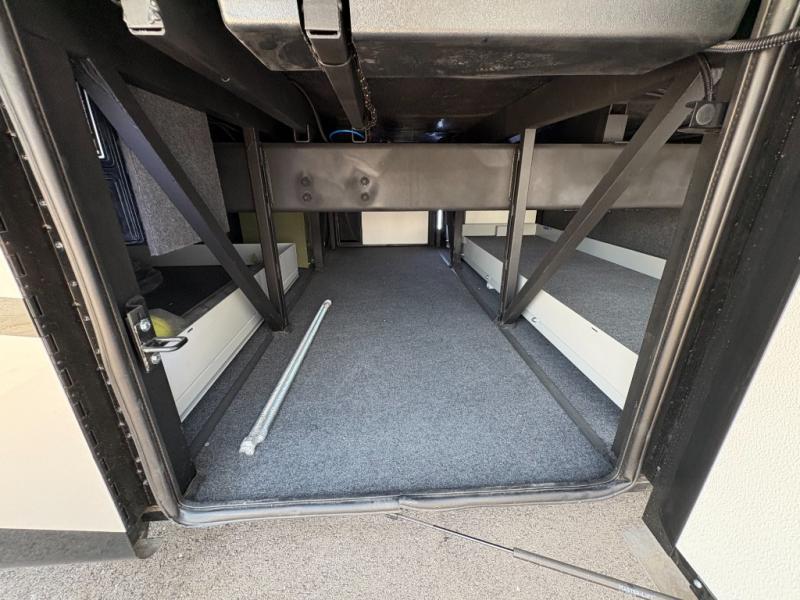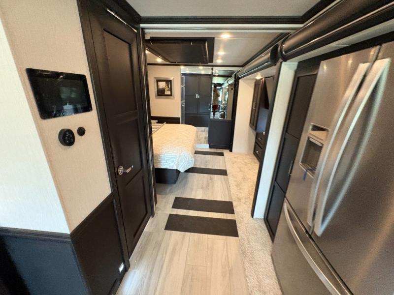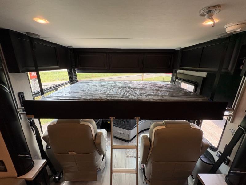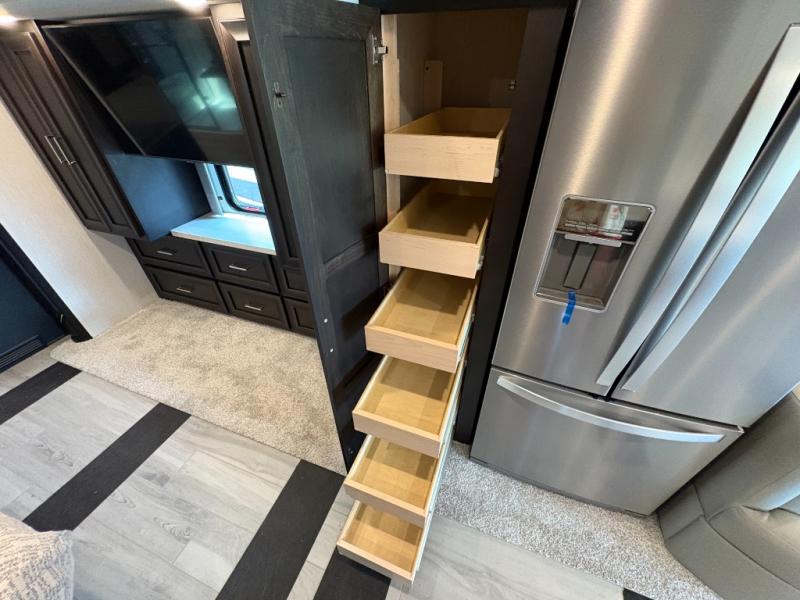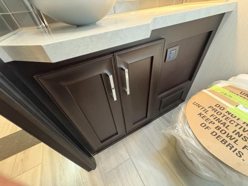 Experience a home away from home with this motorhome! Two can get ready at once in the full rear bathroom with the dual sink vanity, plus it has a 50" x 34" shower with a seat, a linen closet, a wardrobe with doors, adjustable shelves, and even washer and dryer prep. The master suite has access to the bathroom, a king bed slide, and a dresser with wardrobes on either side and a Samsung LED 4K TV. You can prepare your best meals with the all electric induction cooktop, pull-out cabinet, and large pantry then enjoy them at the free-standing dinette with chairs. Now that your belly is full, head to either the 87" hide-a-bed sofa or the 74" jackknife sofa while a movie plays on the 50" Samsung LED 4K TV on a power lift!