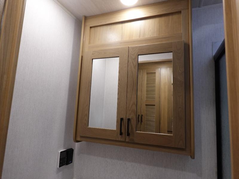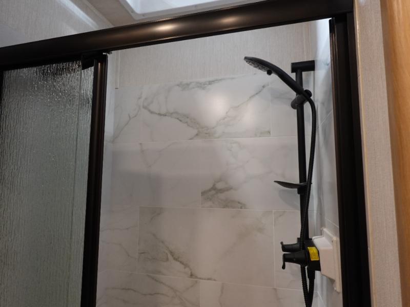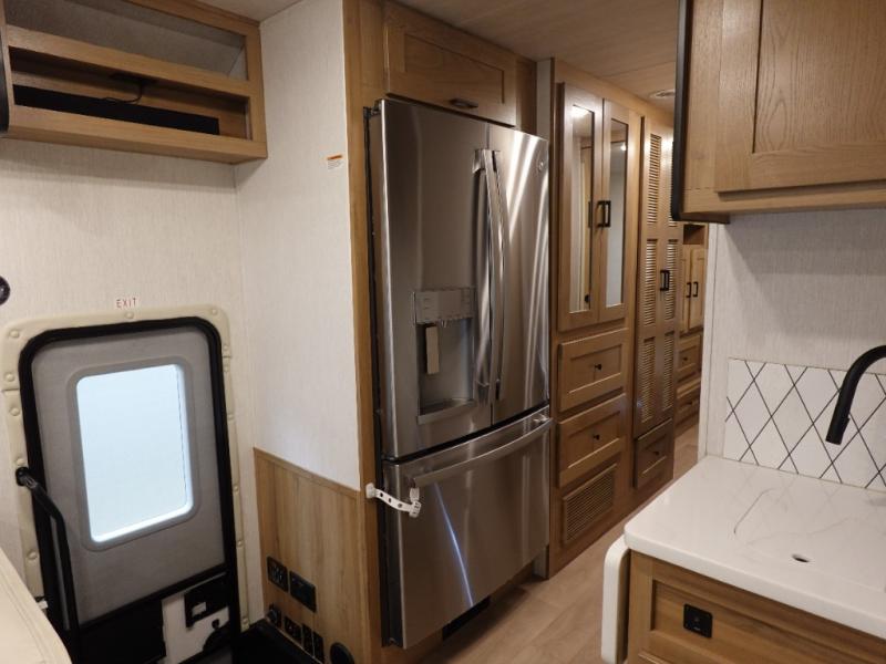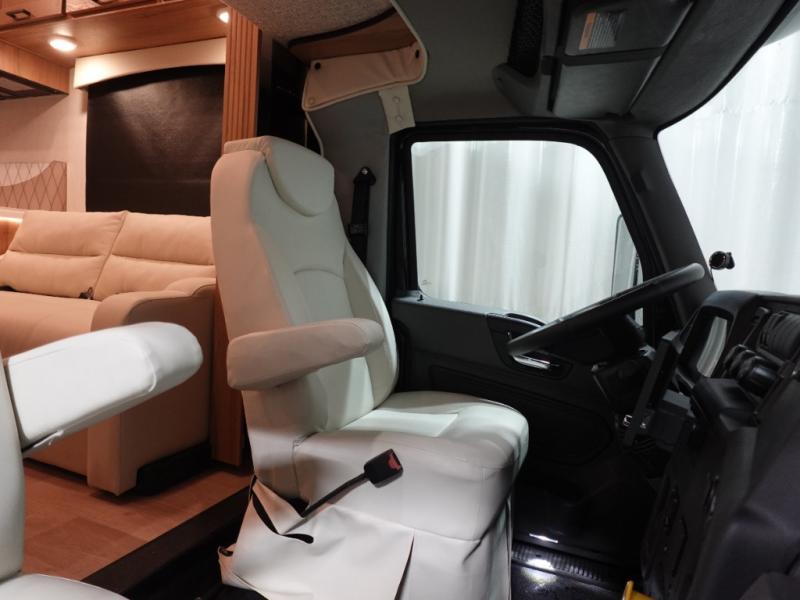 With any NeXus Ghost Super C diesel motorhome you will experience your dream with peace of mind thanks to the construction. From the composite substrate which is impervious to water, the protective diamond shield, and the seamless wraparound fiberglass roof, you can travel whenever you like with confidence. The interior raises the standard with luxury appointments with day/night roller shades, solid surface countertops throughout, stainless steel appliances, and many more luxuries. You will appreciate having an on-demand hot water heater onboard, along with two A/C units, a 30K BTU furnace, and an 8.0 diesel generator for all your power needs. Backup and side view cameras will also come in handy when driving, as well as a 10" touch screen with phone mirroring, and a Mobileye collision warning system for added safety.