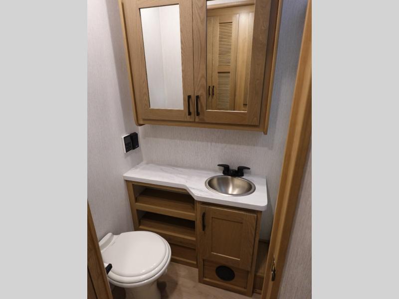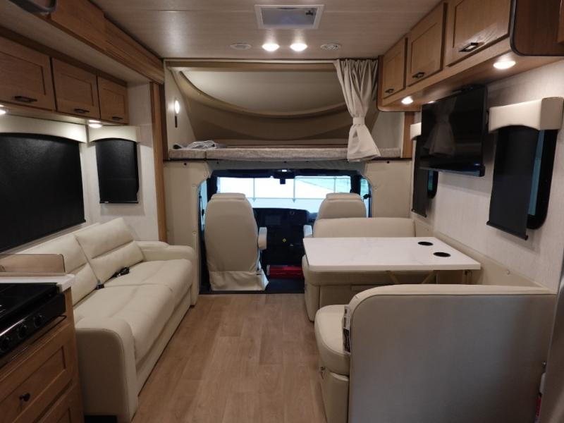Traveling with your spouse or family is made easy in this coach from the spacious interior with two slide outs to the full bathroom allowing you to skip the public facilities! The cook will love the kitchen amenities including the 20.7 cu. ft. residential refrigerator, the stainless steel appliances, and the solid surface countertops. The kids or grandkids will love the cab over bunk and you will enjoy the RV queen bed in the rear bedroom. You will find storage throughout the inside and the outside, plus many more features you are sure to love!