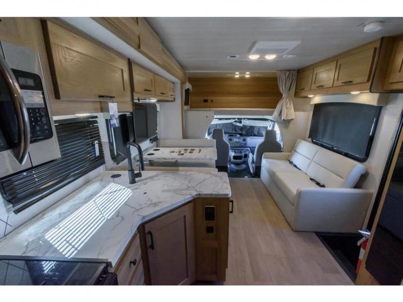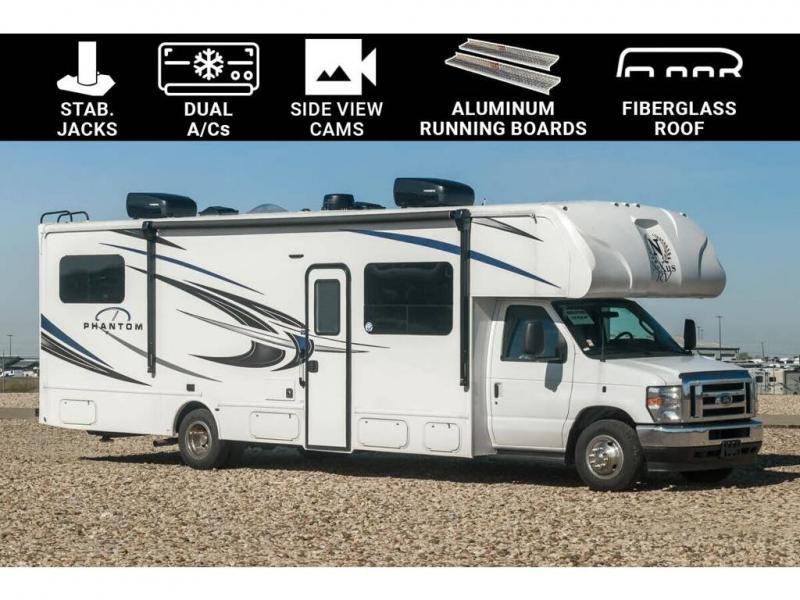Not only will your adventures be exciting in this Phantom Class C gas motorhome, but they will also be comfortable! You have a sofa and booth dinette to relax on after you have exerted all of your energy out on the lake, and the three-burner range and residential microwave in the kitchen will allow you to replenish that energy with a hearty meal. Get cleaned up before bed in the full bathroom and enjoy the added illumination that comes from the shower skylight.