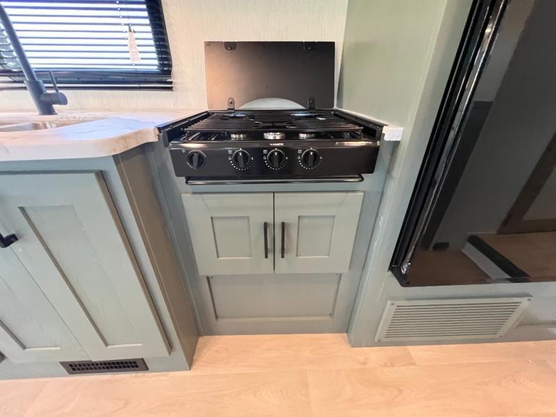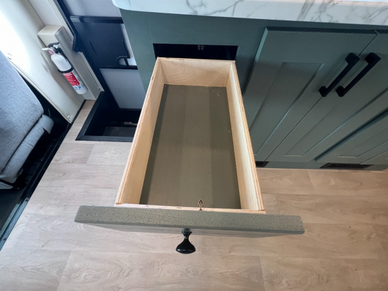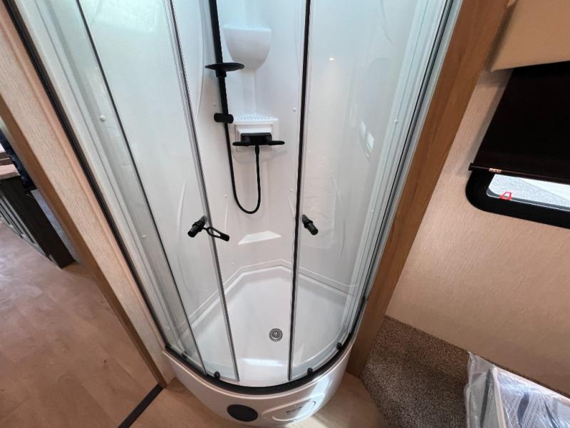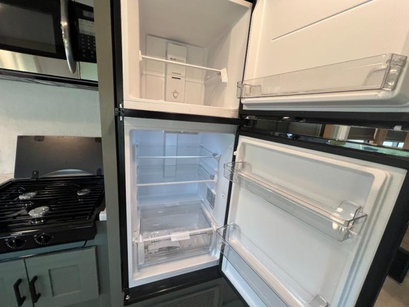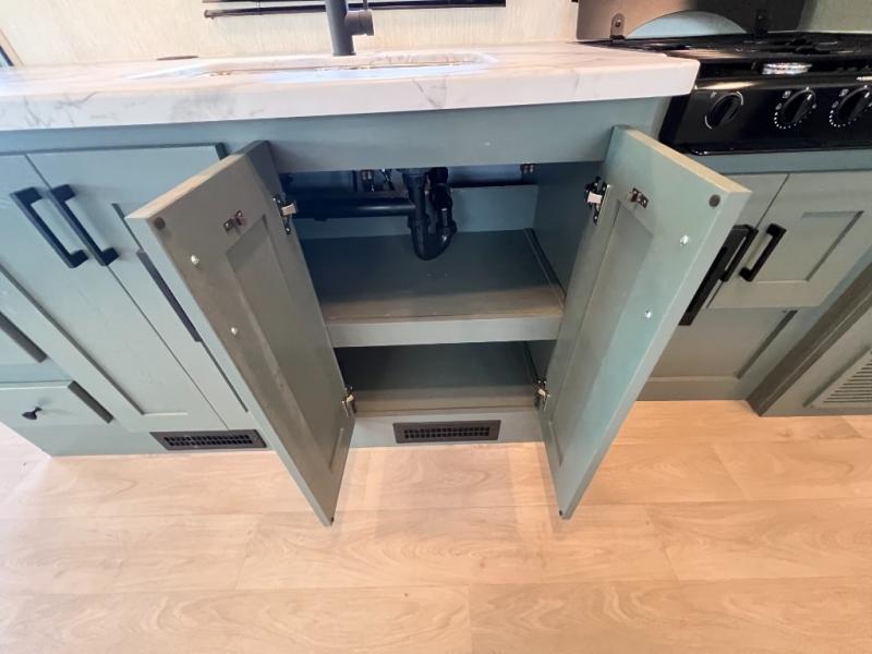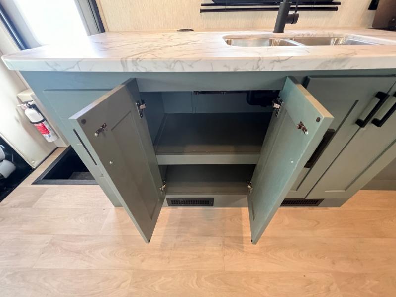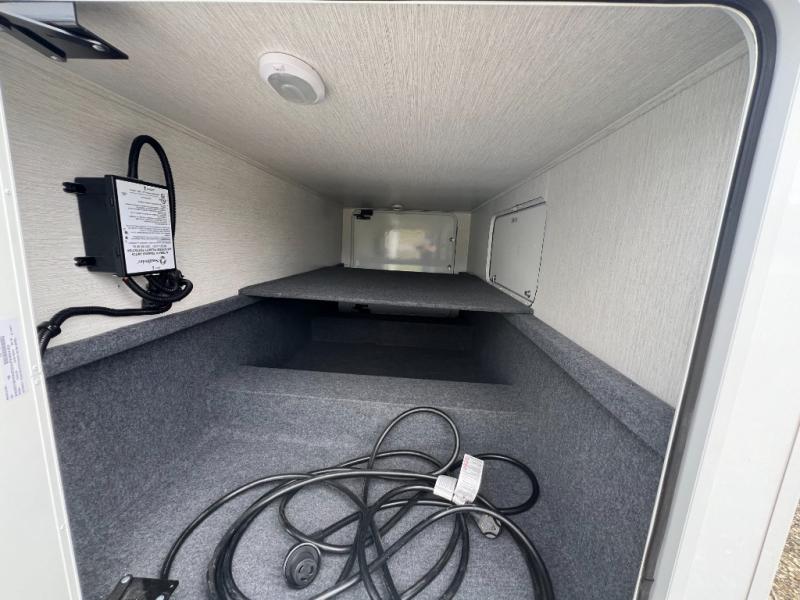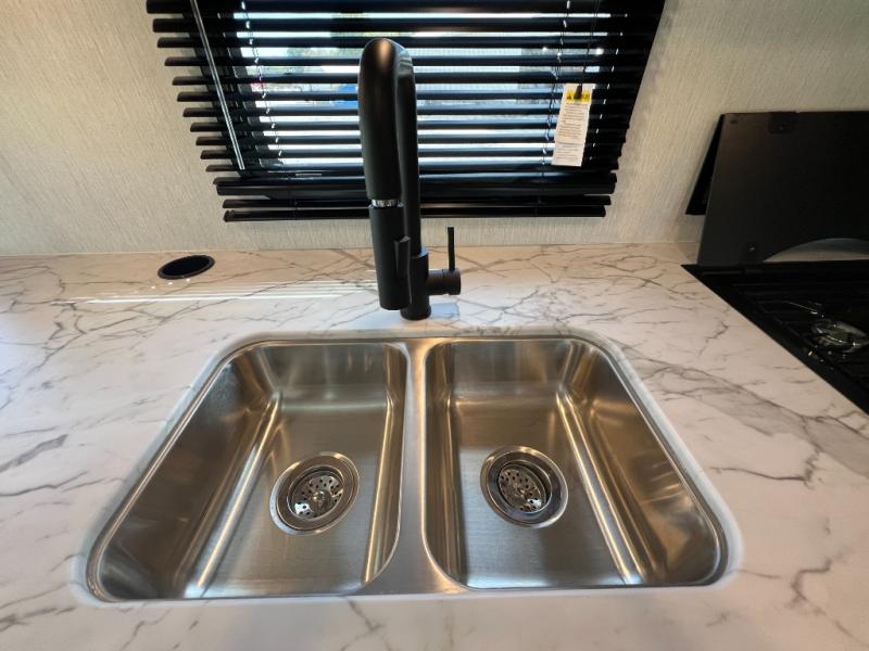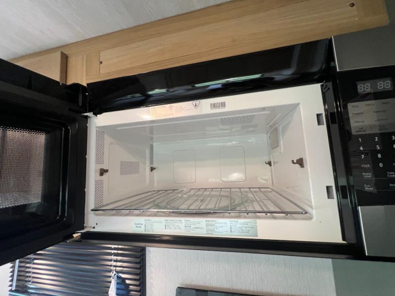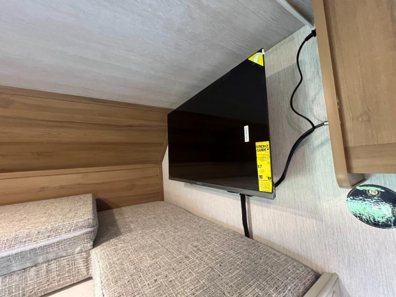 There is plenty of sleeping and seating space for everyone in this motorhome between the bunk over cab, the queen bed in the rear private bedroom, the sofa, and booth dinette which transform into sleeping spaces! The separated bathroom makes it convenient for one person to freshen up in the shower while another uses the private toilet and stainless steel sink with a dual control faucet. The private bedroom also has a wardrobe slide for your clothes and ledges on either side of the queen bed to set your electronics or cup of water!