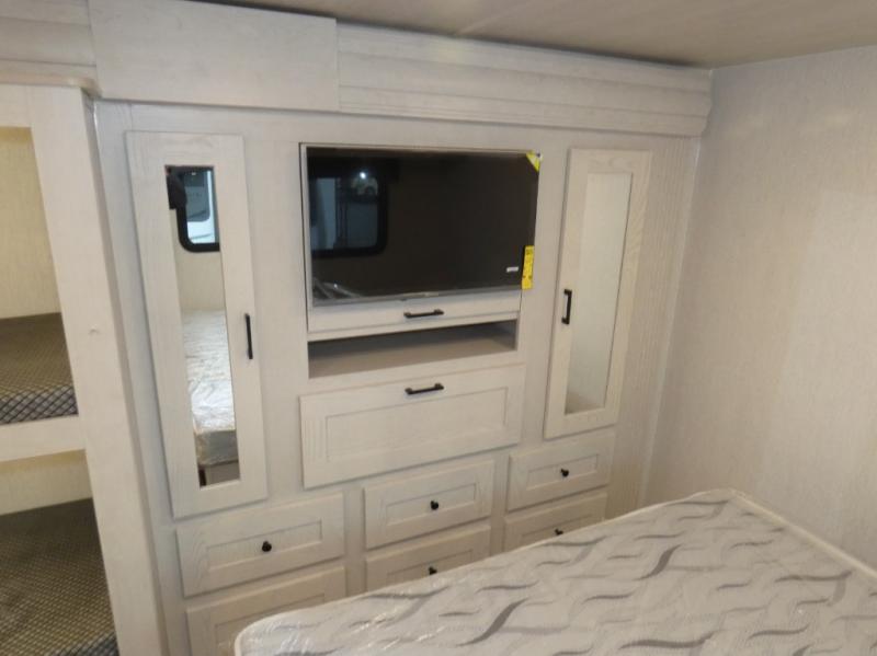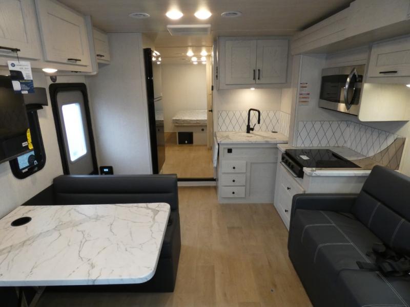 With a set of bunk beds, the grandkids can come along on all of your great adventures with this motorhome! The rear private bedroom has a queen bed for you to lay your head on at night with a wardrobe closet across from it to keep your clothes looking their best. The full bathroom is across from the bunk beds and has a shower with a skylight above and a flexible hose with the shower head, plus there is an outside shower to keep the sand outdoors. The booth dinette is not only great for enjoying your meals and playing card games, but also for transforming into an extra sleeping space. End your nights in true relaxation by sitting in one of the two recliners!