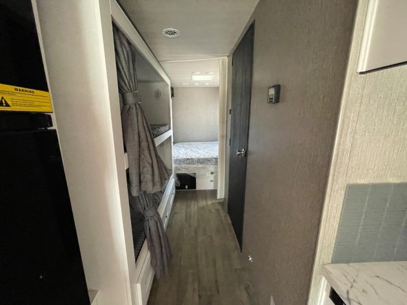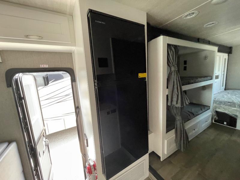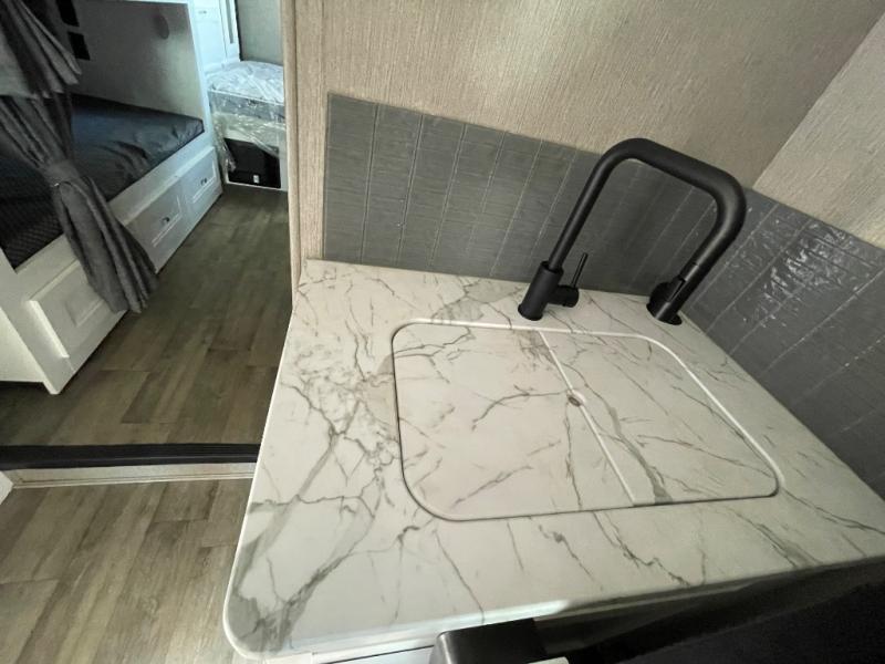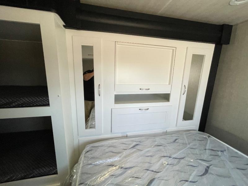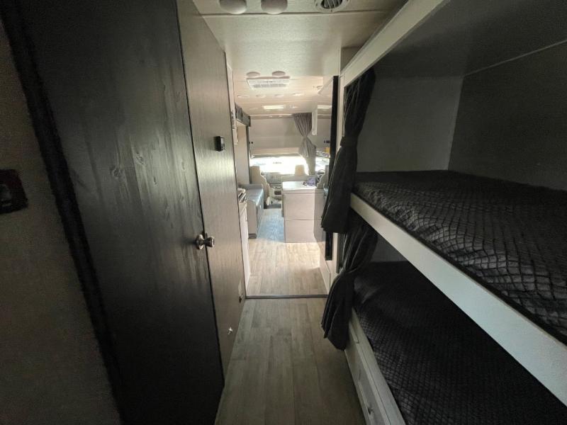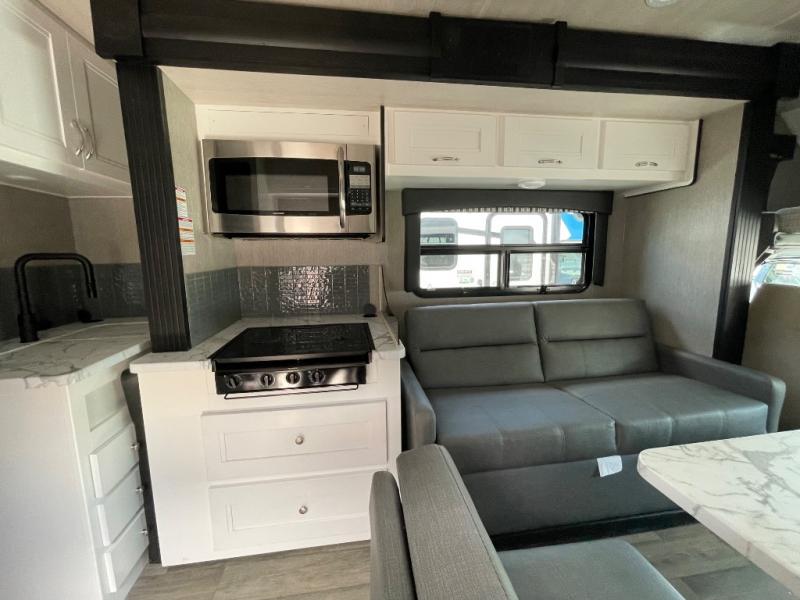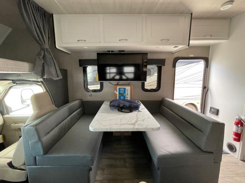 With a set of bunk beds, the grandkids can come along on all of your great adventures with this motorhome! The rear private bedroom has a queen bed for you to lay your head on at night with a wardrobe closet across from it to keep your clothes looking their best. The full bathroom is across from the bunk beds and has a shower with a skylight above and a flexible hose with the shower head, plus there is an outside shower to keep the sand outdoors. The booth dinette is not only great for enjoying your meals and playing card games, but also for transforming into an extra sleeping space. End your nights in true relaxation by sitting in one of the two recliners!